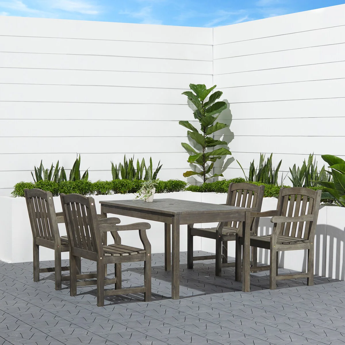 Hermosa Outdoor Acacia Wood Rectangle Dining Table Grey
