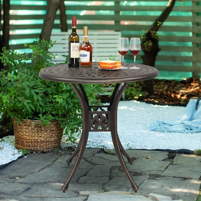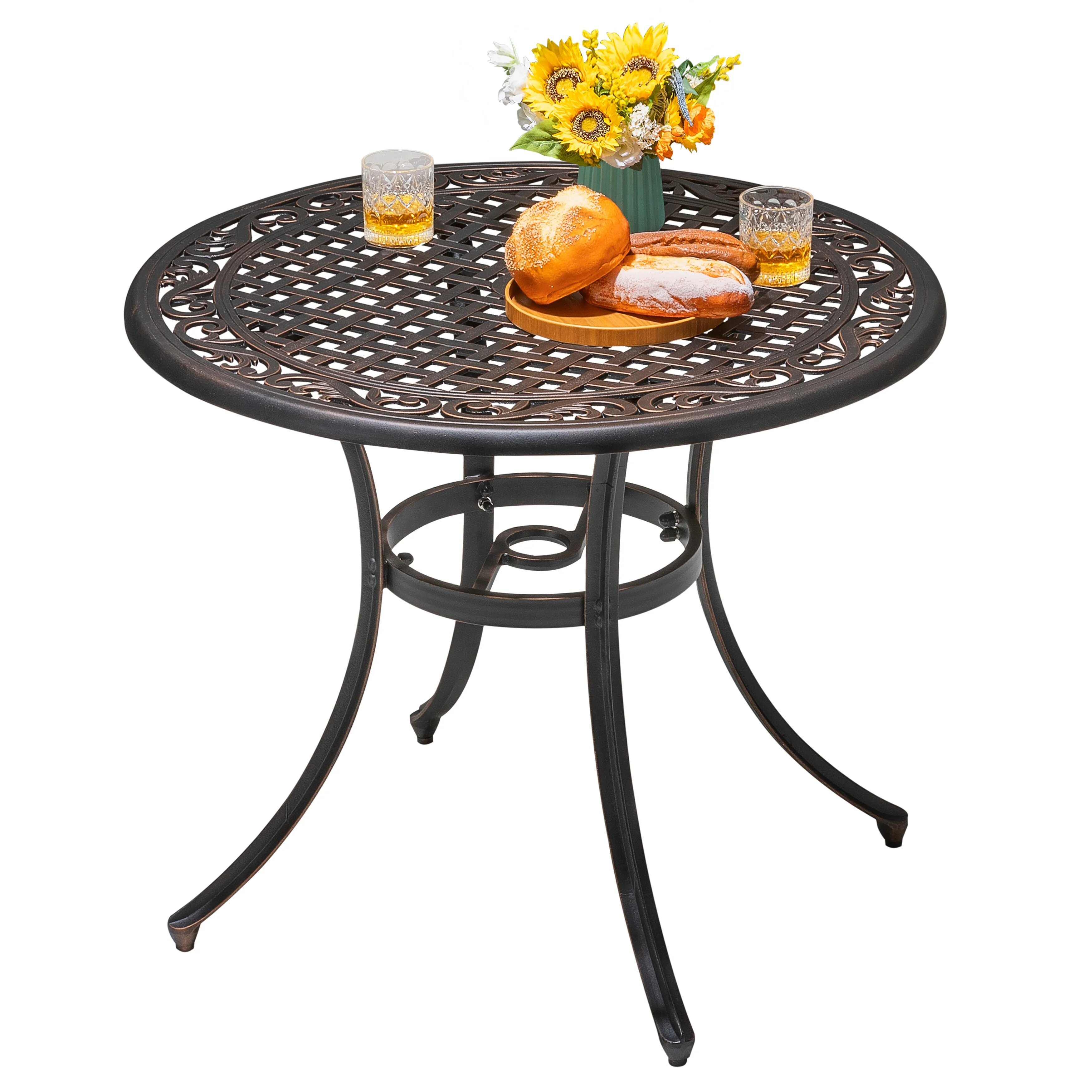 Outdoor Round Cast Aluminum Dining Table with Umbrella Hole
