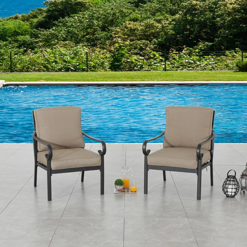 Patio Festival Outdoor Metal Chair with Beige Cushions (2-Pack)