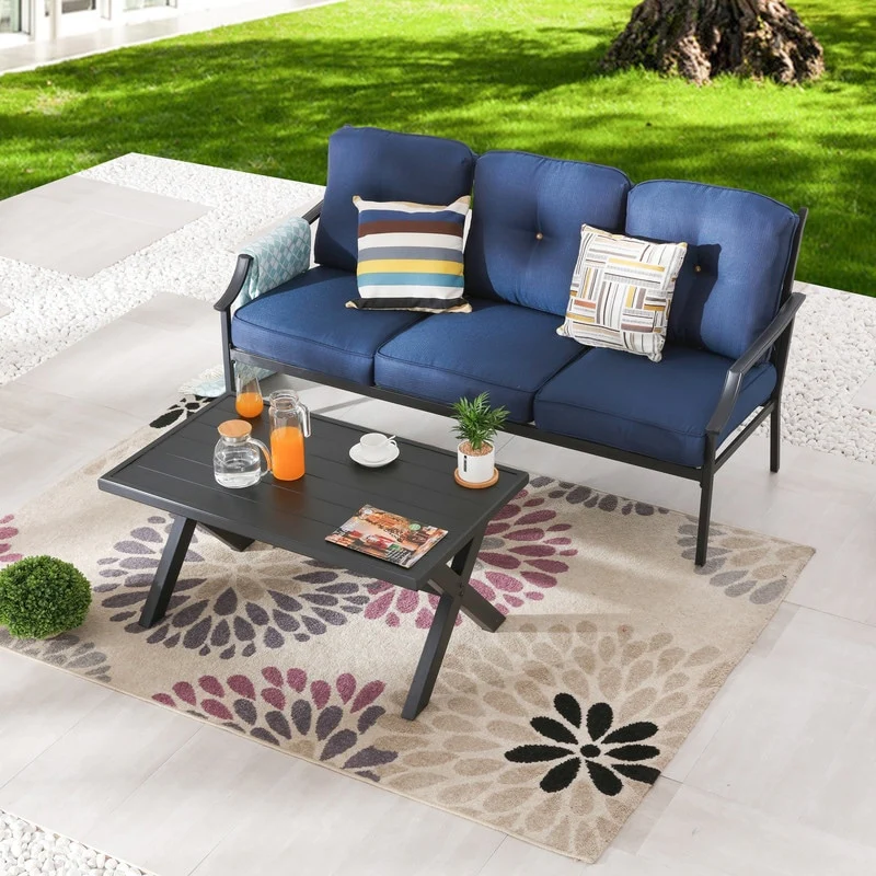 Patio Festival 2-Piece Outdoor Metal Sofa with Coffee Table Set