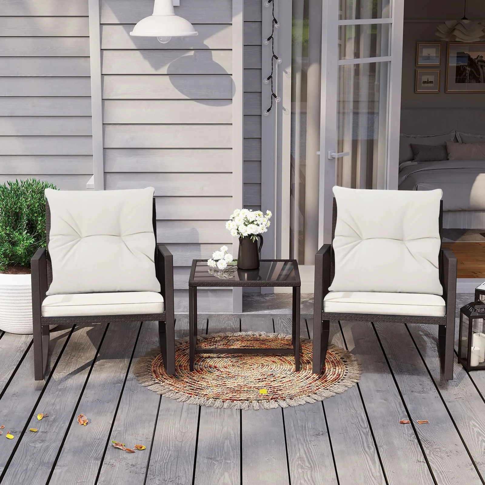 COSIEST Outdoor Bistro Rocking Chair Set with Cushions
