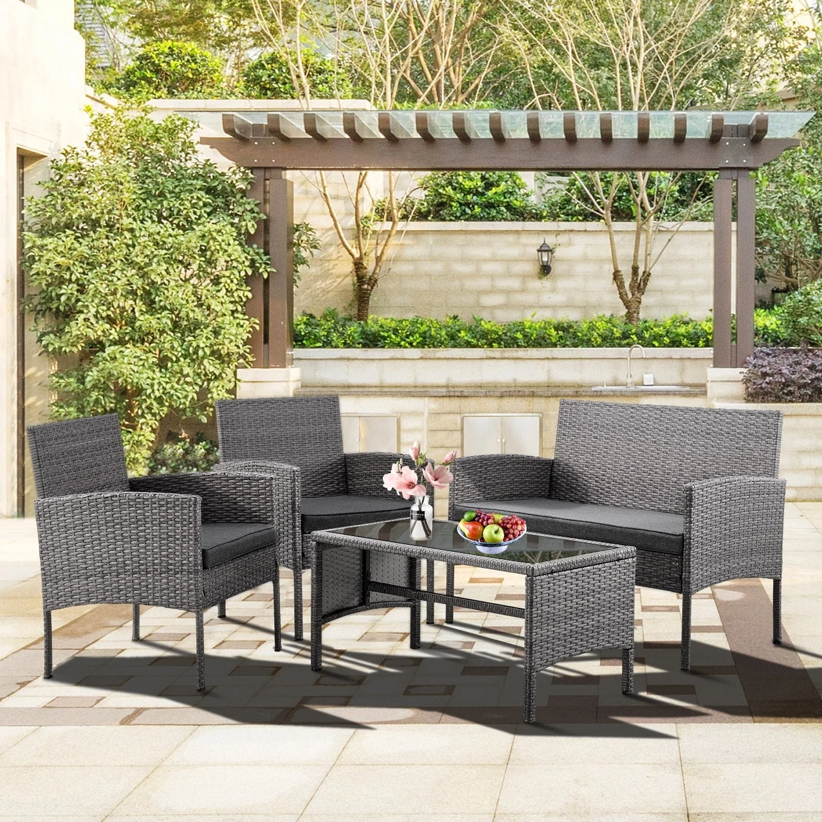 4 PCS Patio Furniture Set Rattan Chair Wicker Set