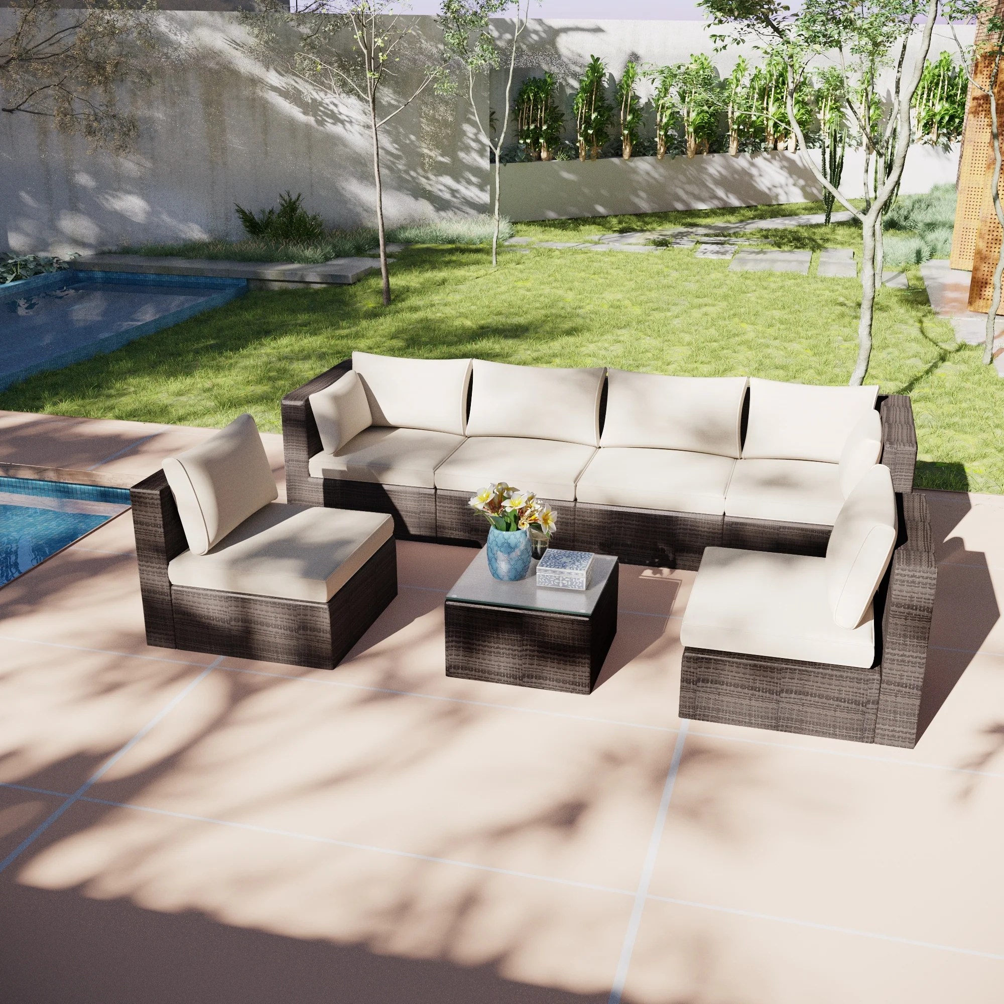 7-Piece Wicker Outdoor Sectional Set with Cushions and Coffee Table
