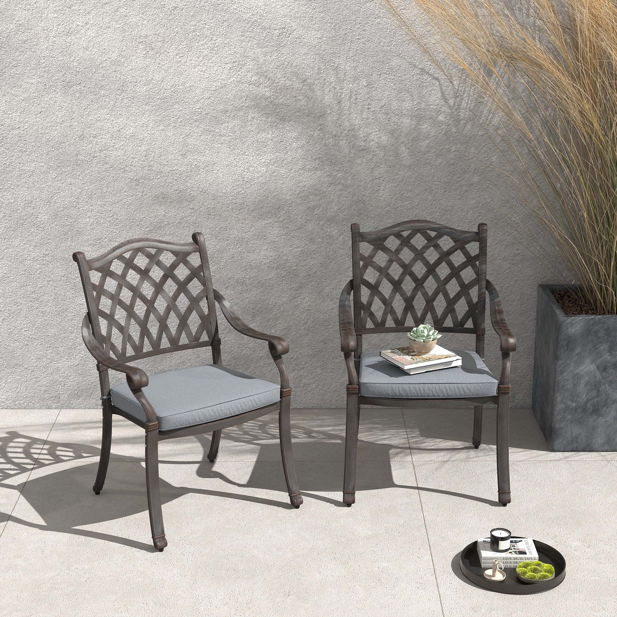 Patio Cast Aluminum Dining Chairs with Cushions Set of 2