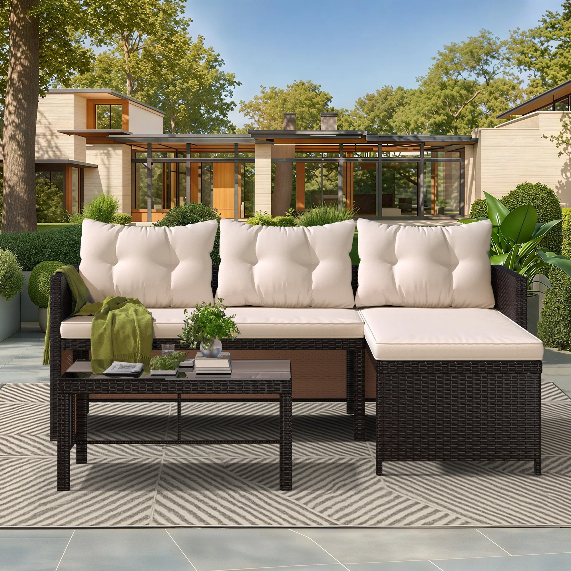 OVIOS 5-piece Patio Furniture Wicker Outdoor High-back Seating Set