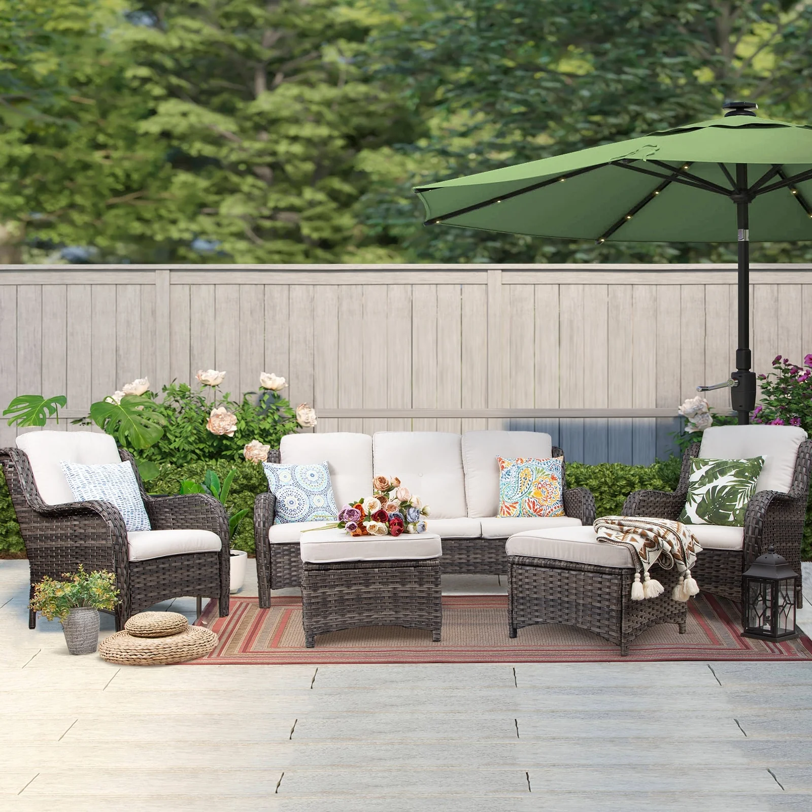 Cozywor 5-Piece Wicker Outdoor Patio Conversation Set
