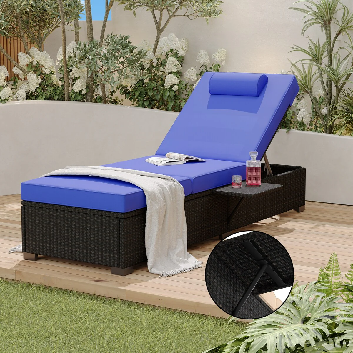 Adjustable Outdoor Wicker Reclining Chaise Lounge with Cushion