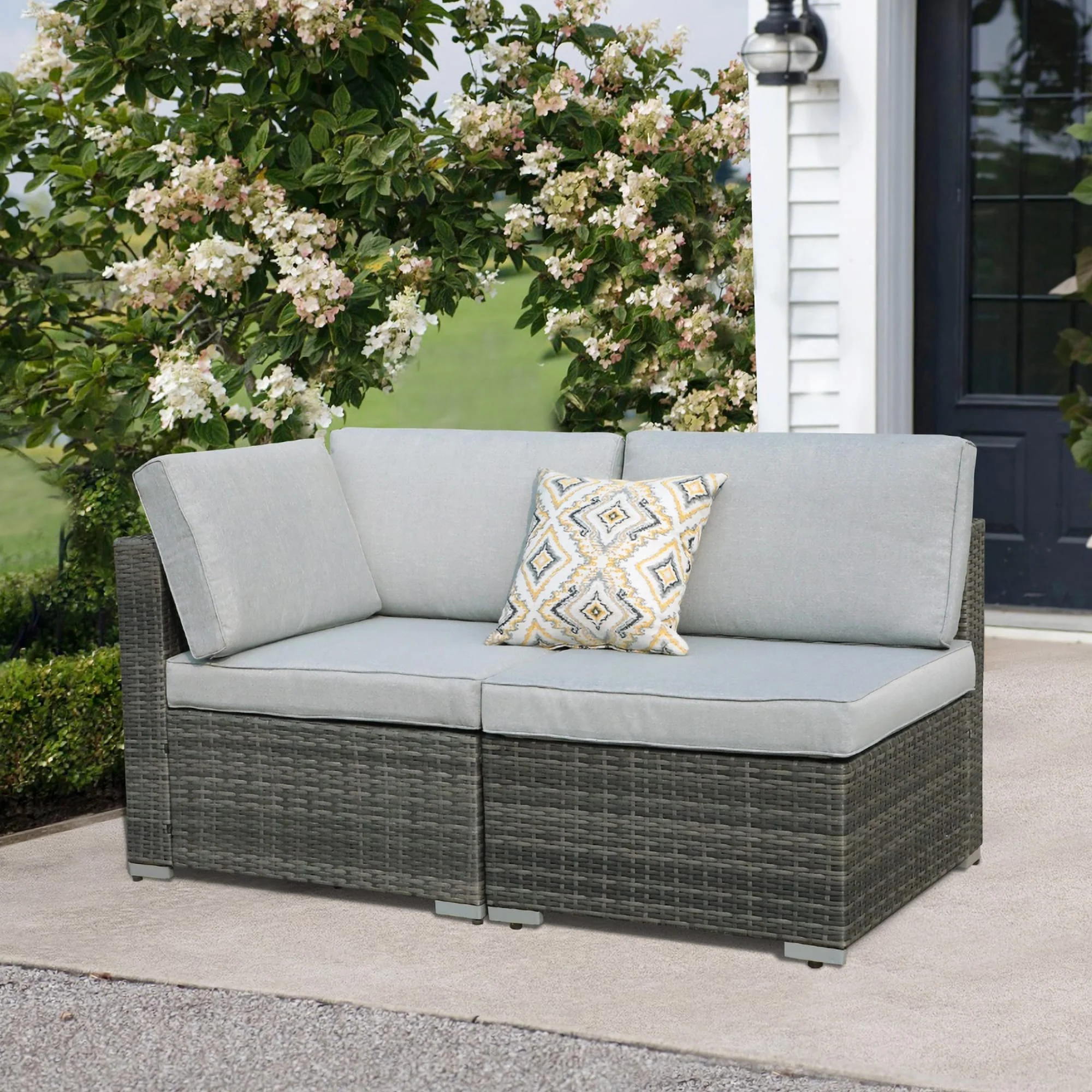 2 pieces Wicker Patio Corner Sofa Sectional Set