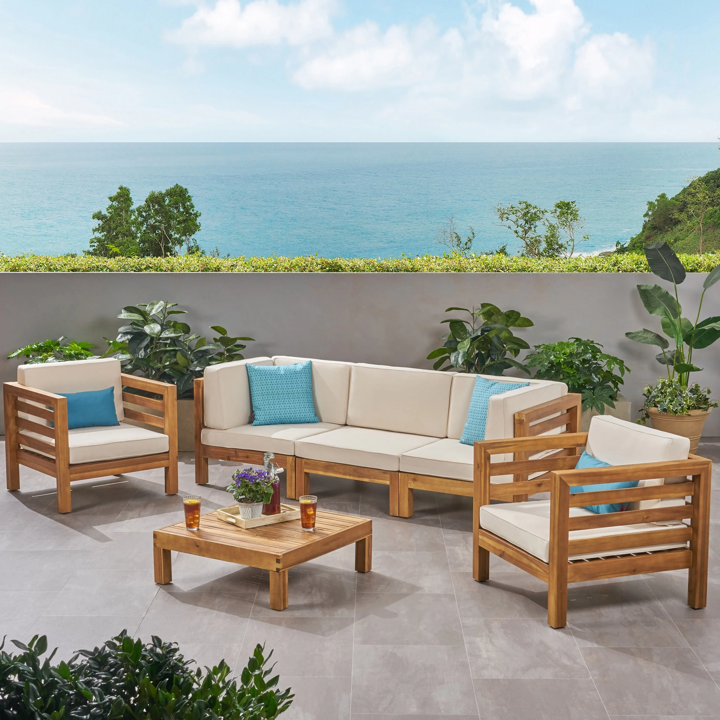 Carolina Acacia Wood Outdoor Sofa by Christopher Knight Home