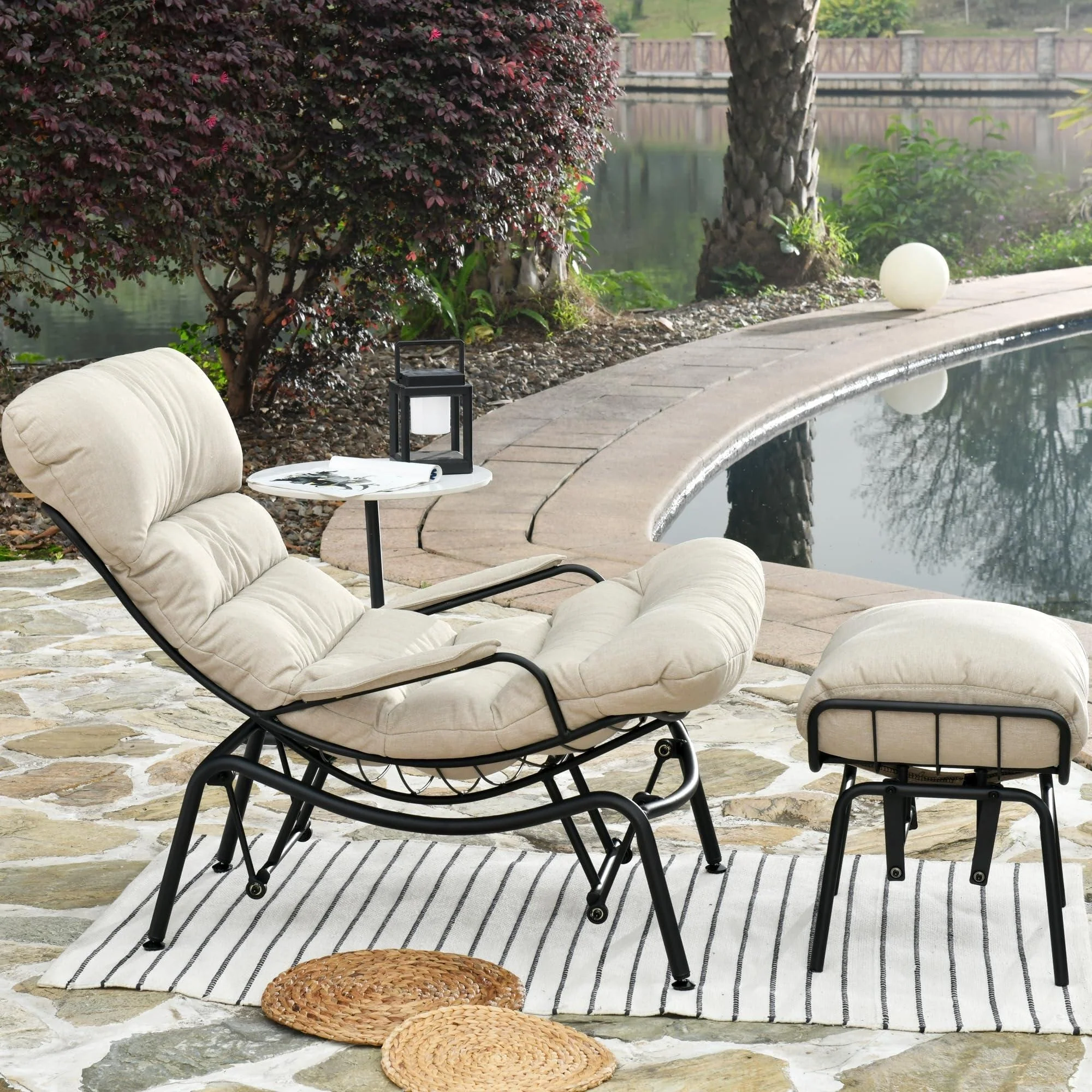 XIZZI 2-piece Outdoor Rocking Chair Recliner with Ottoman