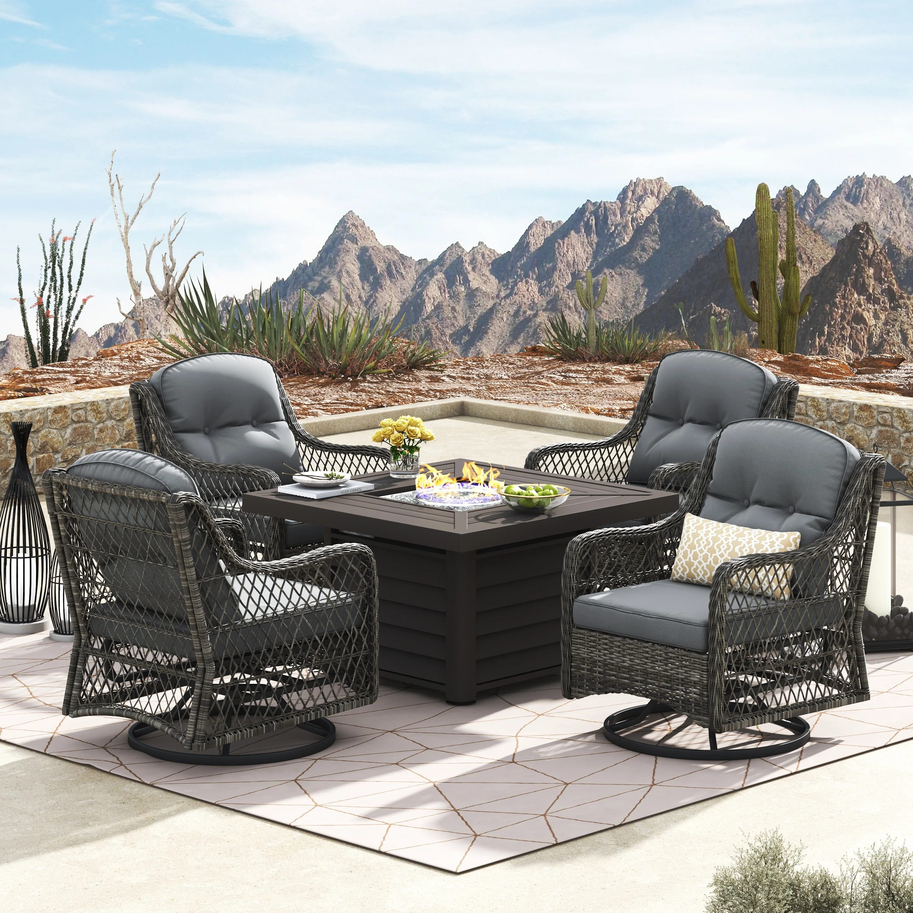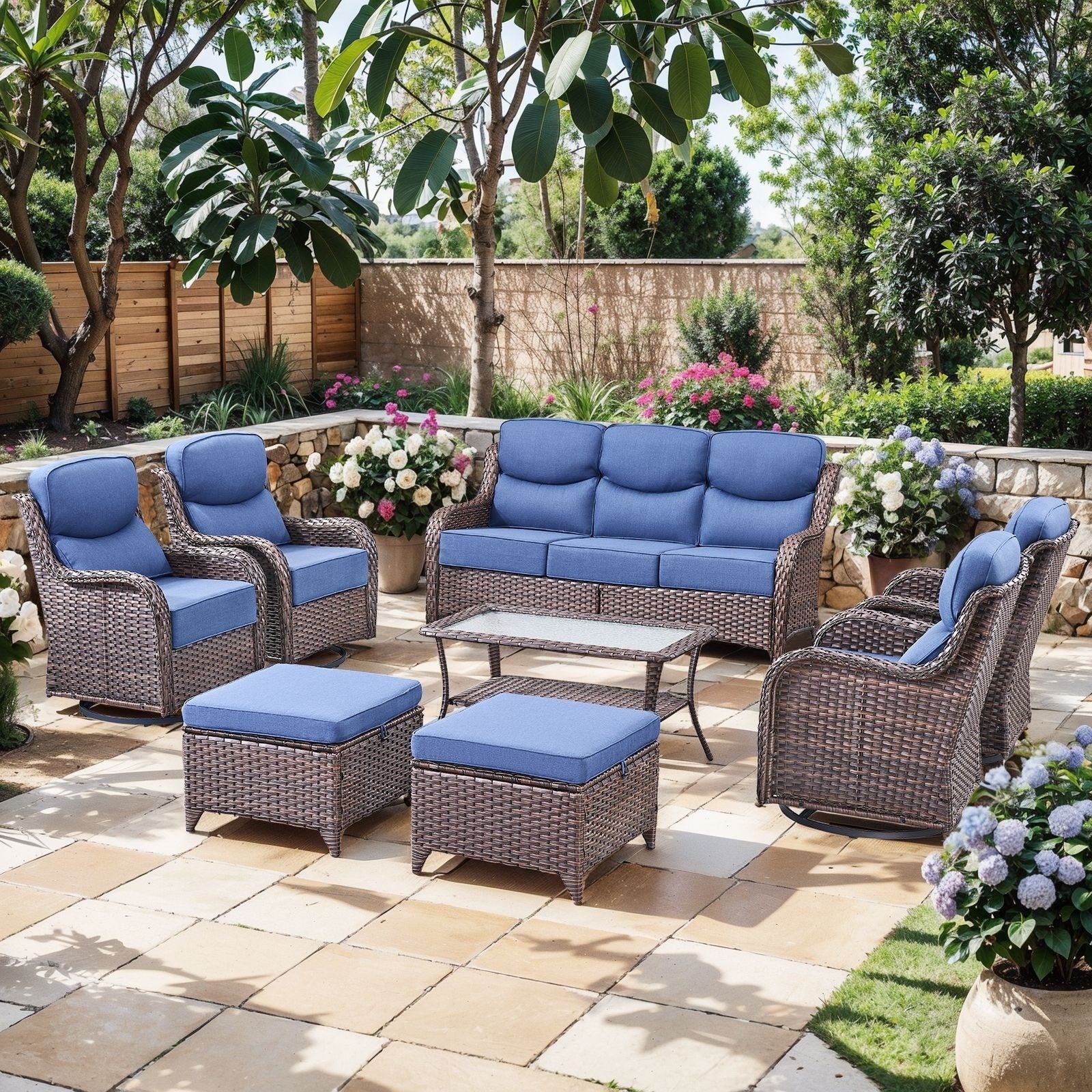 Outdoor Patio Sofa Swivel Chair with 6-Inch Thick Cushions Set