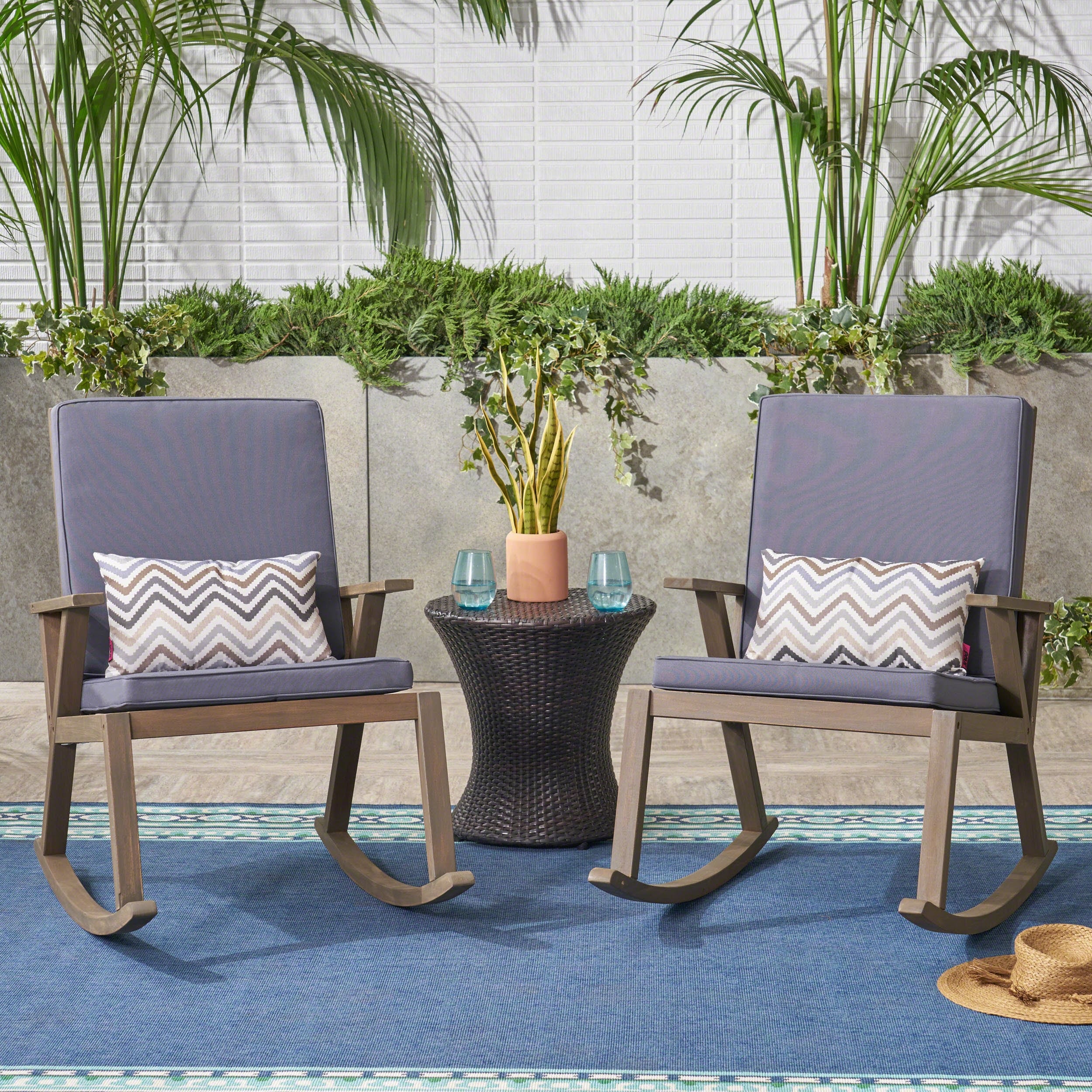 Cozywor 3-Piece Wicker Patio Swivel Outdoor Rocking Chair Set