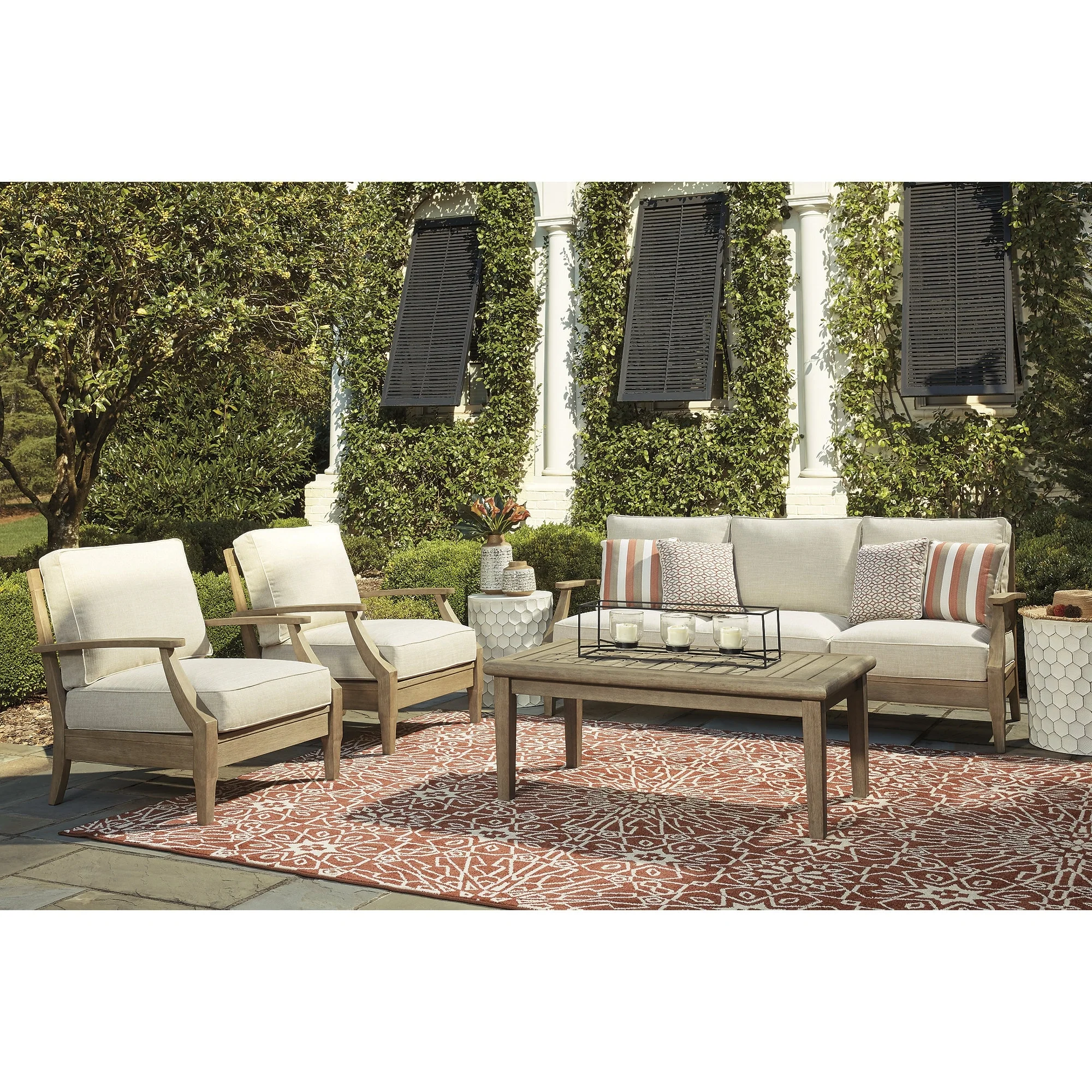 Indonesian Teak 3-Piece Club Chair Set with Sunbrella Cushions