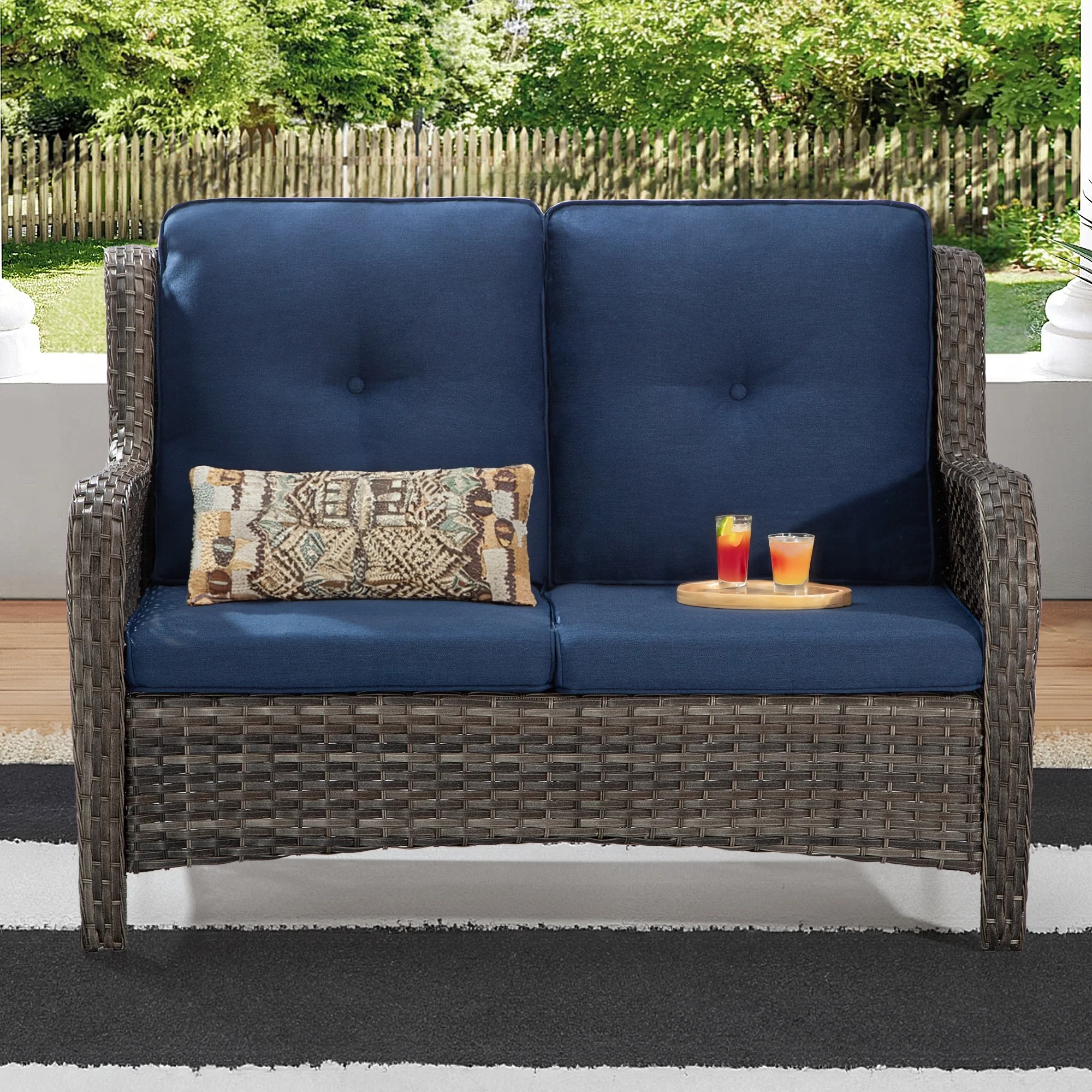 Cozywor Brown Wicker Outdoor Patio Loveseat with Cushions
