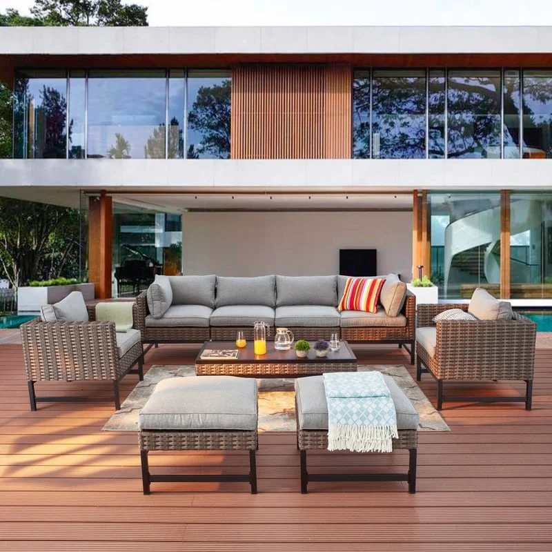 Patio Festival 9-Piece Right-Angle Wicker Outdoor Conversation Set