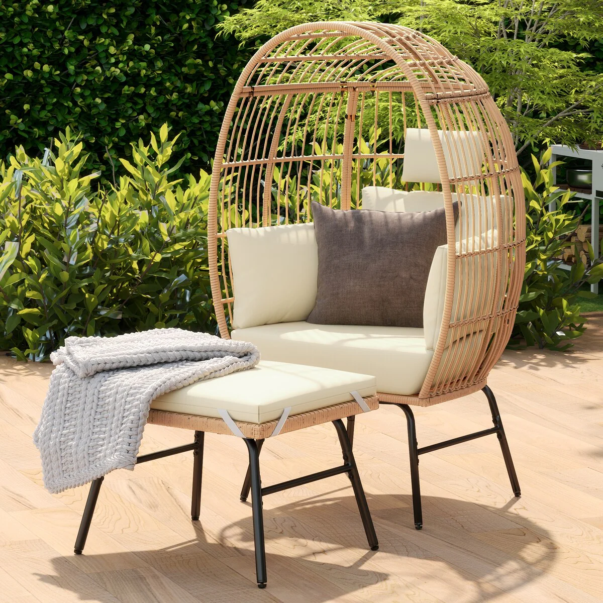 Pellebant Outdoor Wicker Egg Chair with Cushion