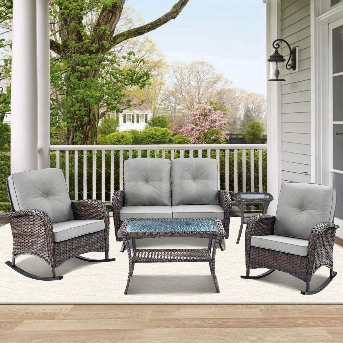 Patio Rocking Chair with Outdoor Glider Sofa