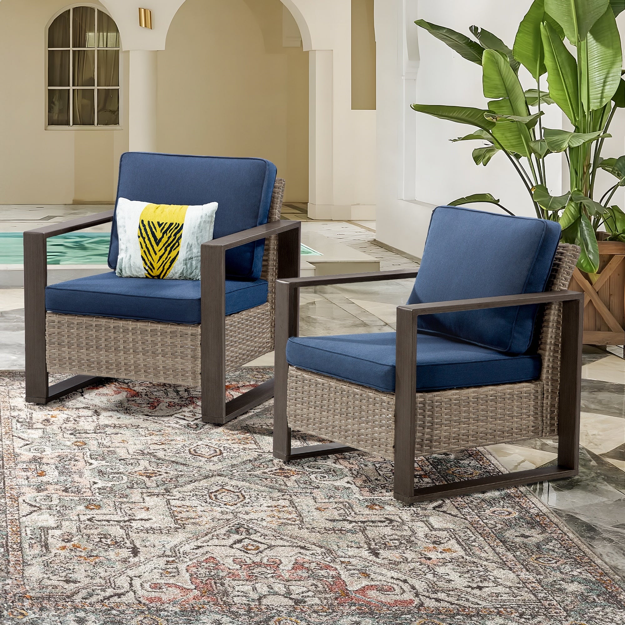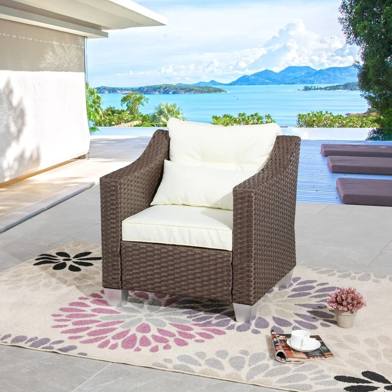 Patio Festival Outdoor Armrest Wicker Chair with Cushion