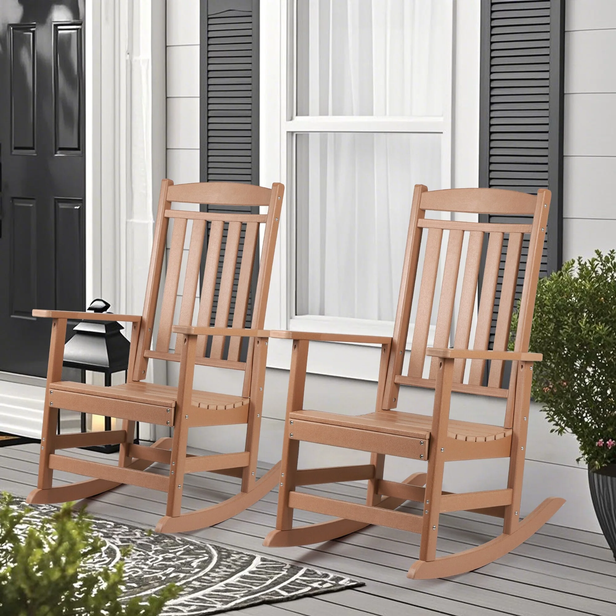 Vrakae All Weather Outdoor High Back Rocking Chair Set of 2