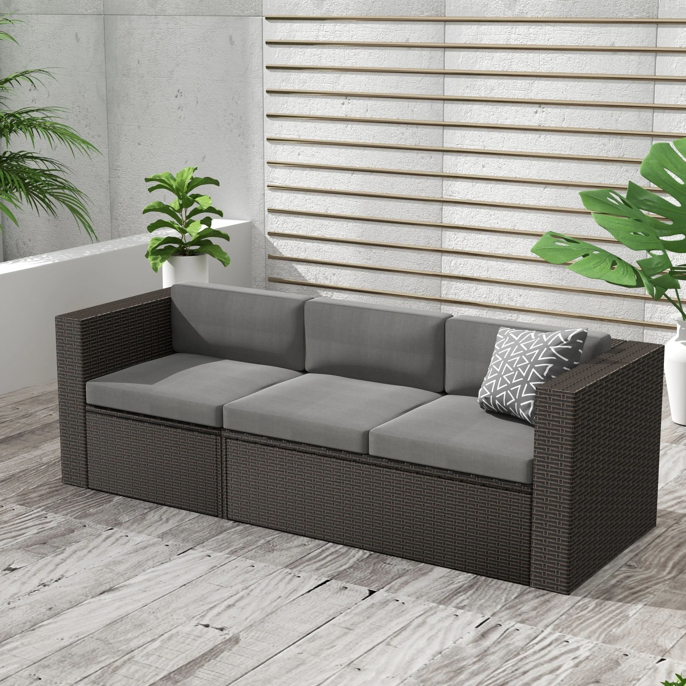 Rhodes Outdoor Cushioned Wicker / Rattan Sectional Sofa