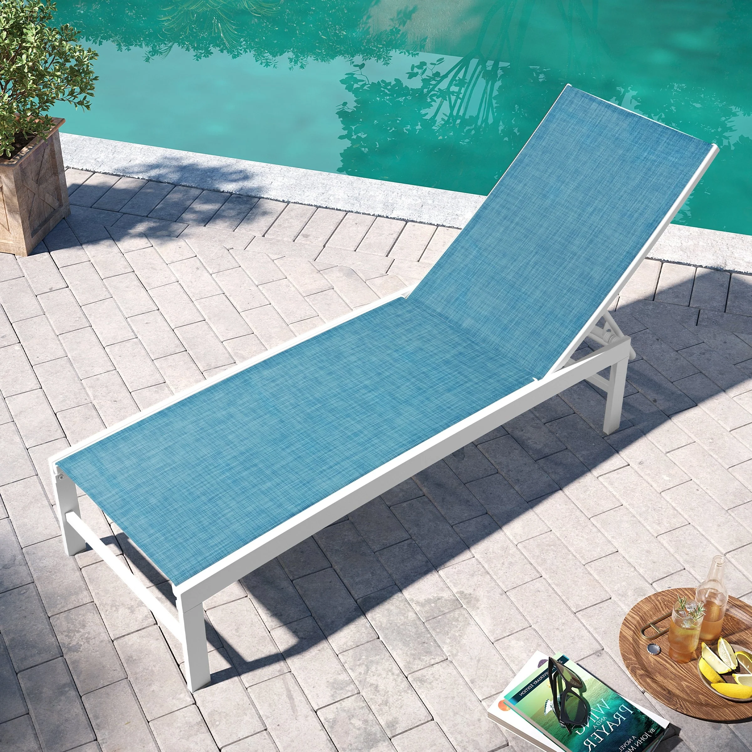 Acacia Wood with Elevated Table Patio Wood Recliner Bed - N/A