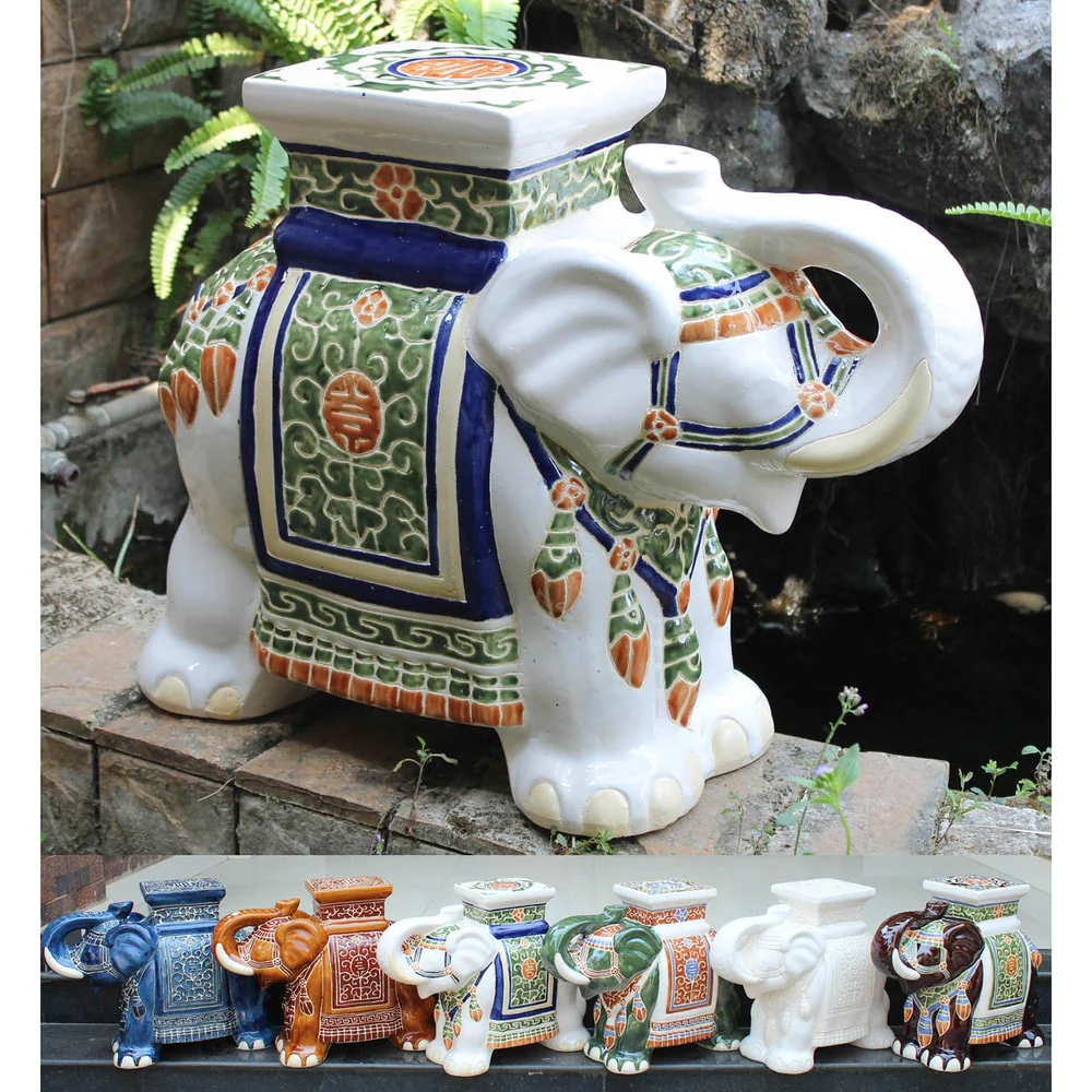 International Caravan Large Porcelain Elephant Stool