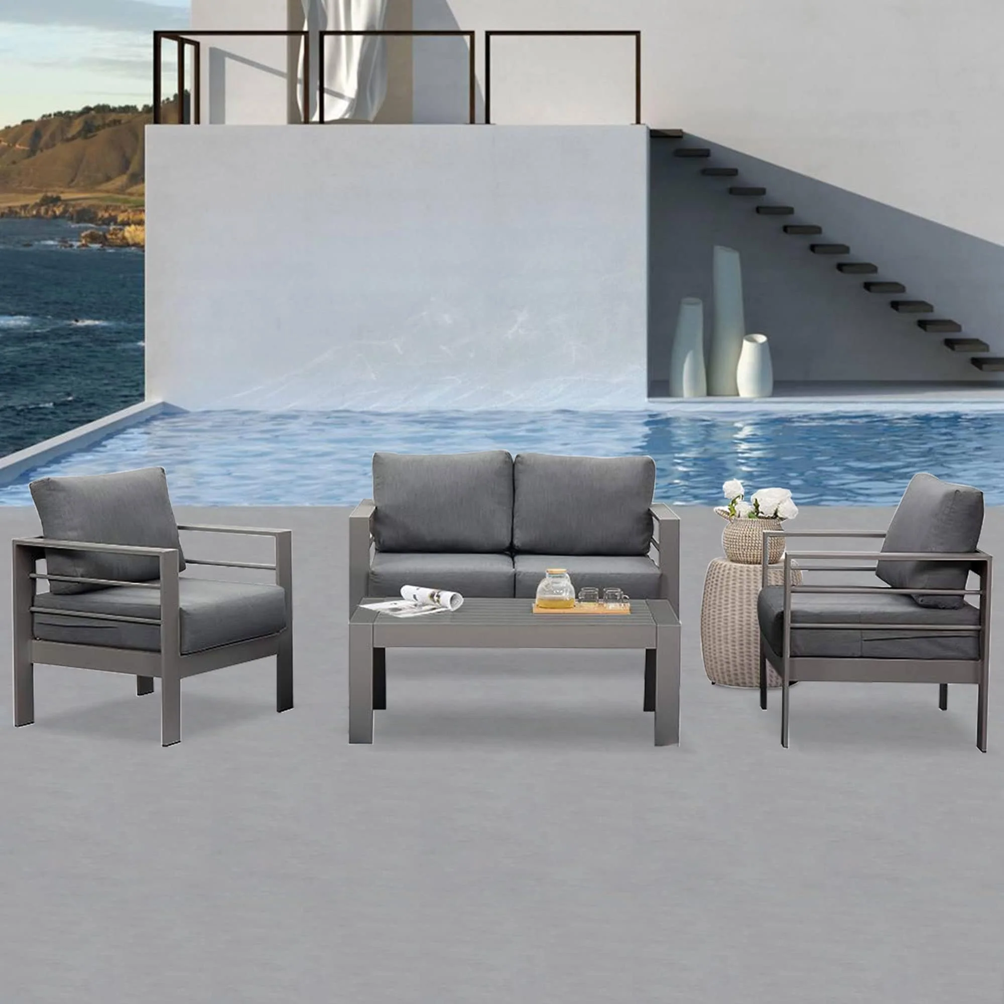 Royalcraft 4 Piece Aluminum Outdoor Patio Furniture Set