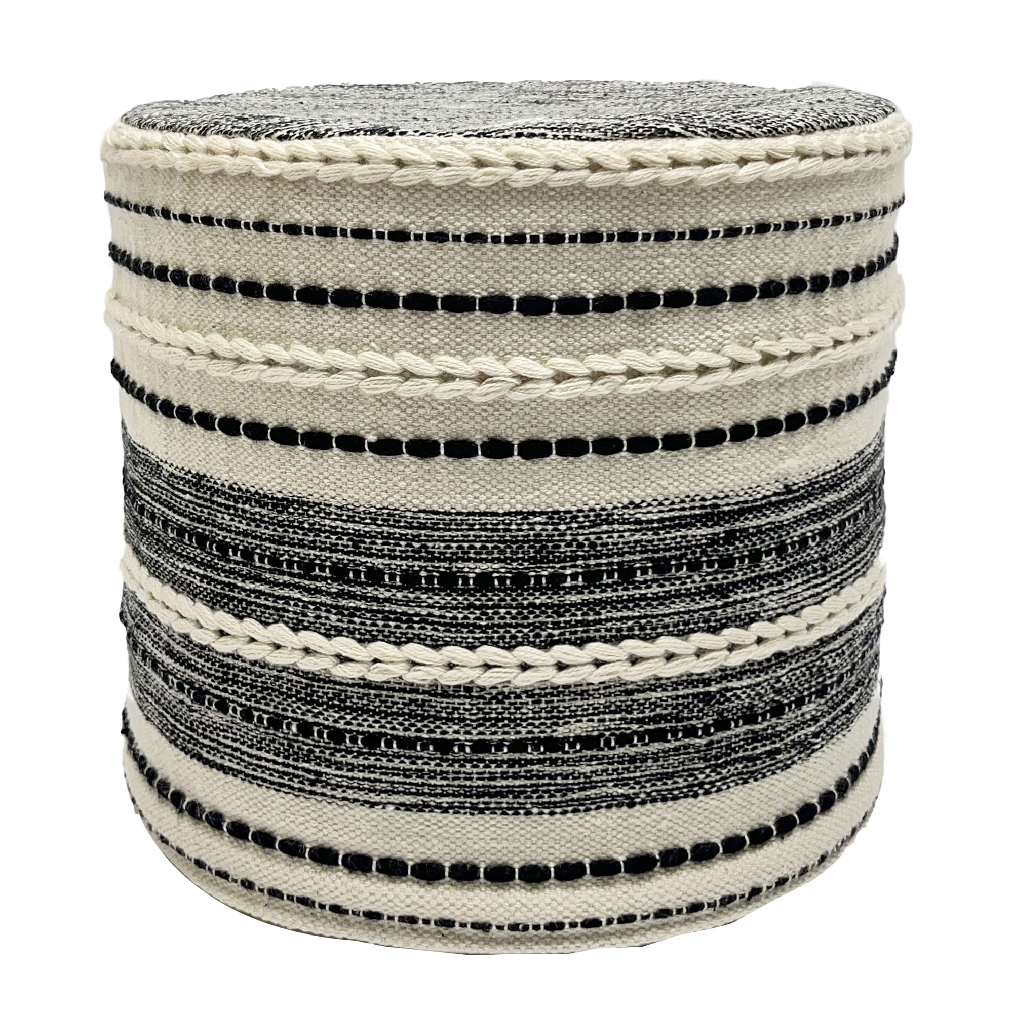 18 Cream and Black Outdoor Woven Pouf Ottoman