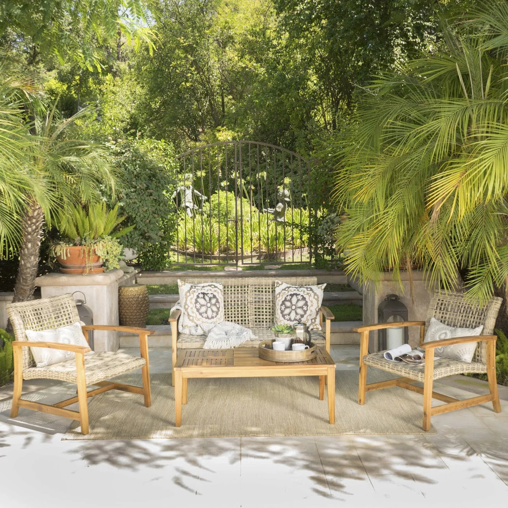 Hampton Outdoor 4-piece Acacia Chat Set by Christopher Knight Home