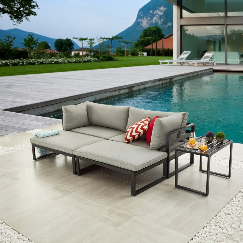 2-piece Outdoor Alumiunm Gray Patio Chaise Lounge Chair