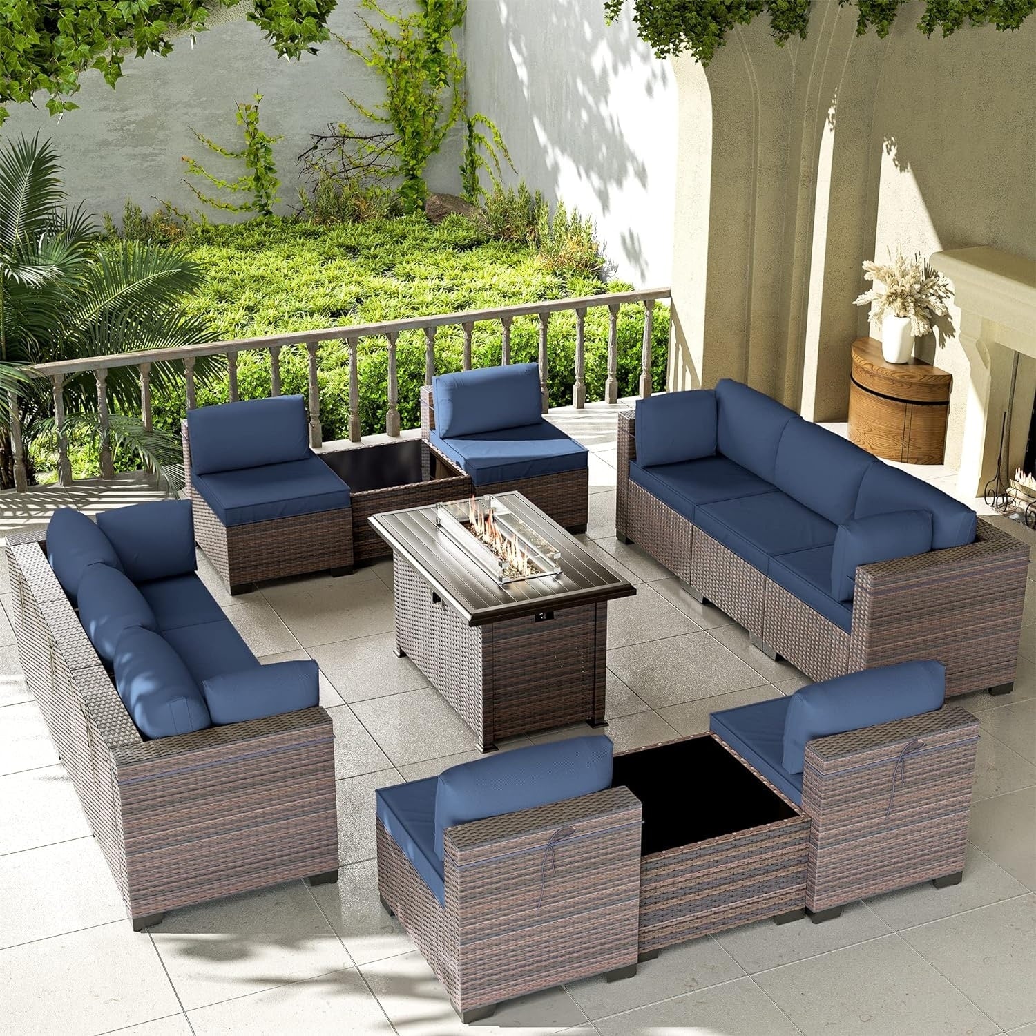 Kullavik 13 Pieces Outdoor Patio Furniture Set with Fire Pit Table