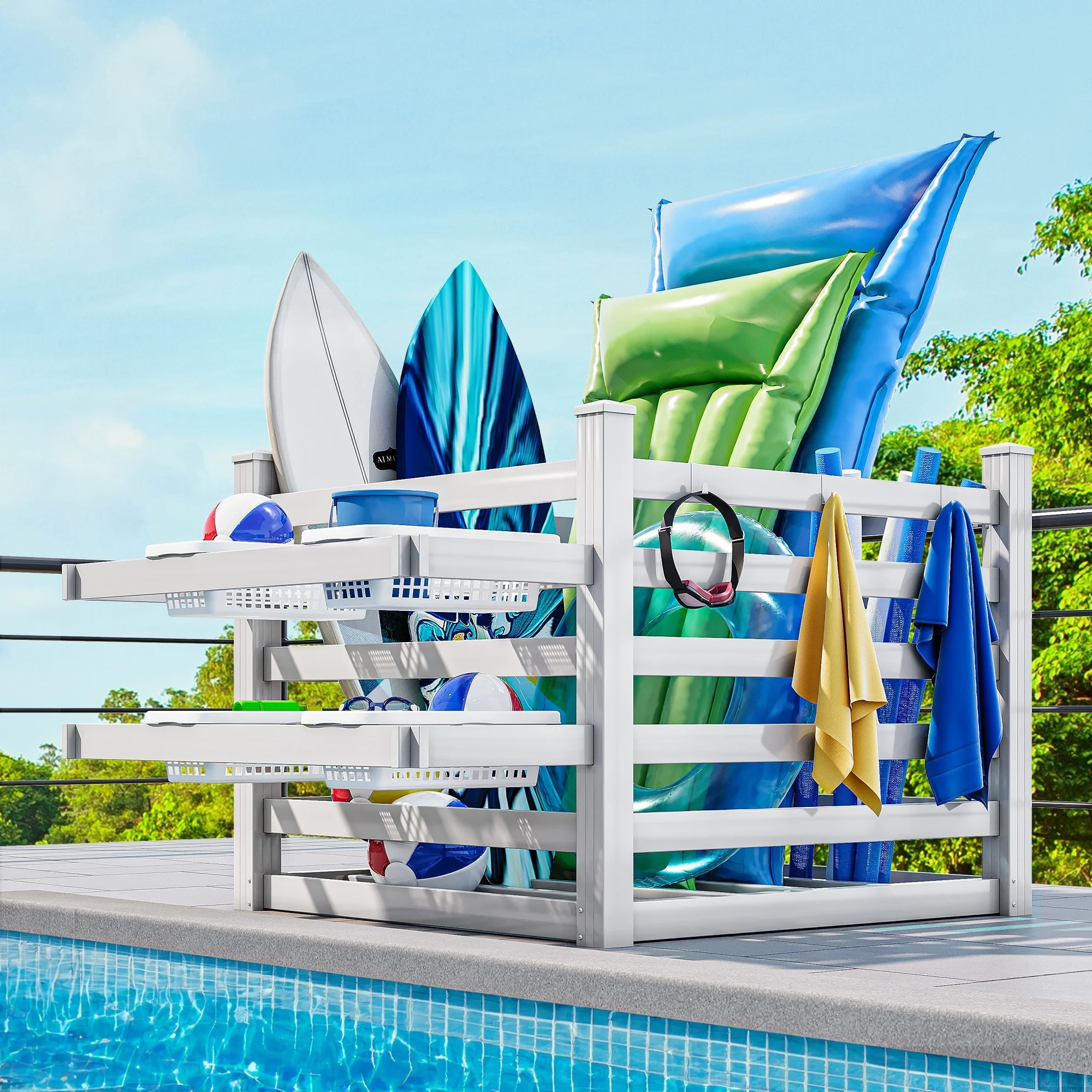 Pool Towel Rack Outdoor with Rattan 5 Bar Free Standing Poolside