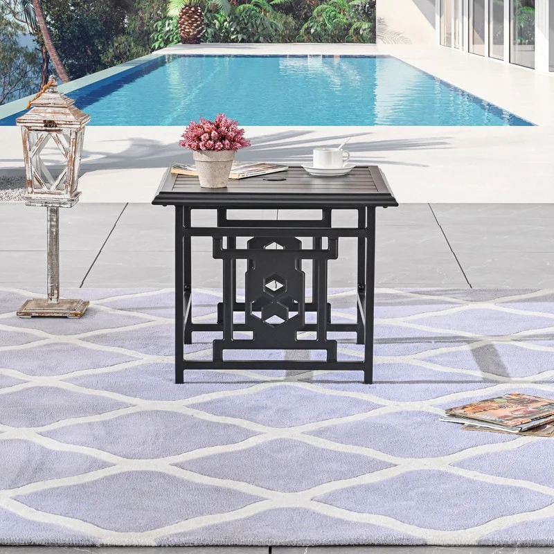 PATIO FESTIVAL Square Metal Outdoor Side Table w/ Umbrella Hole