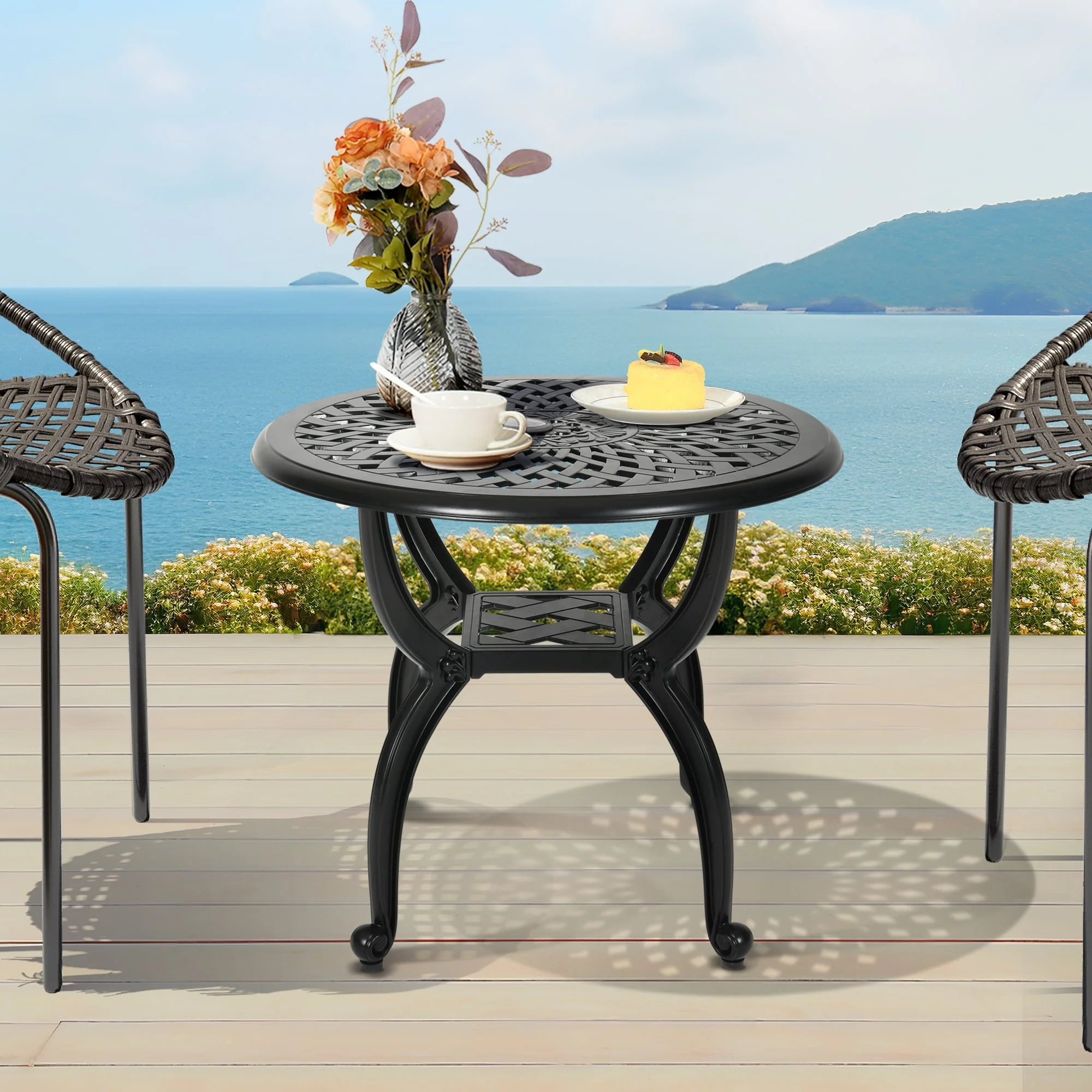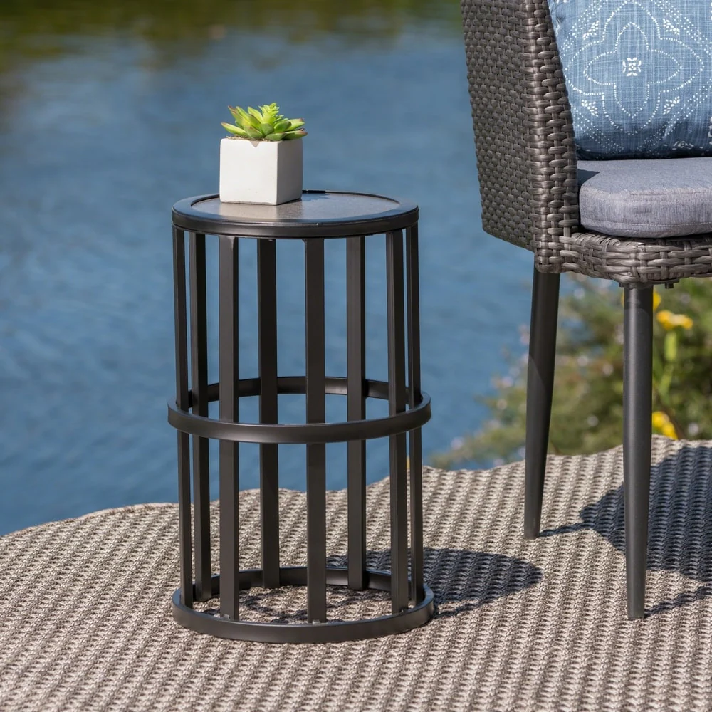 Laguna Black Outdoor Bistro Table with Marble Tile Top