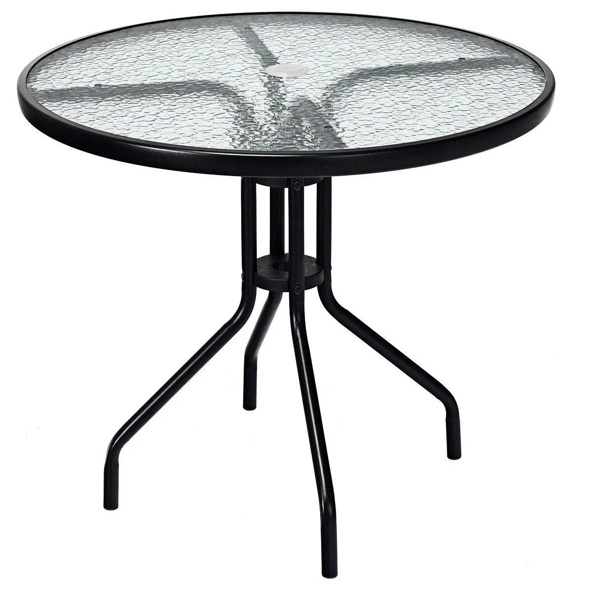 Costway 32''Outdoor Patio Round Table Tempered Glass Top