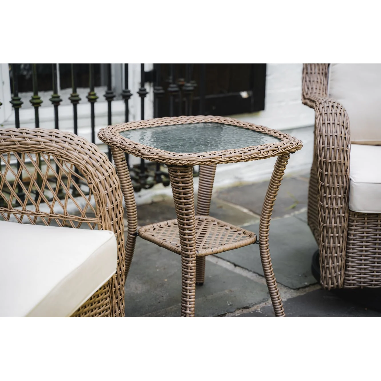 Rio Vista Outdoor Wicker Side Table with Tempered Glass Top