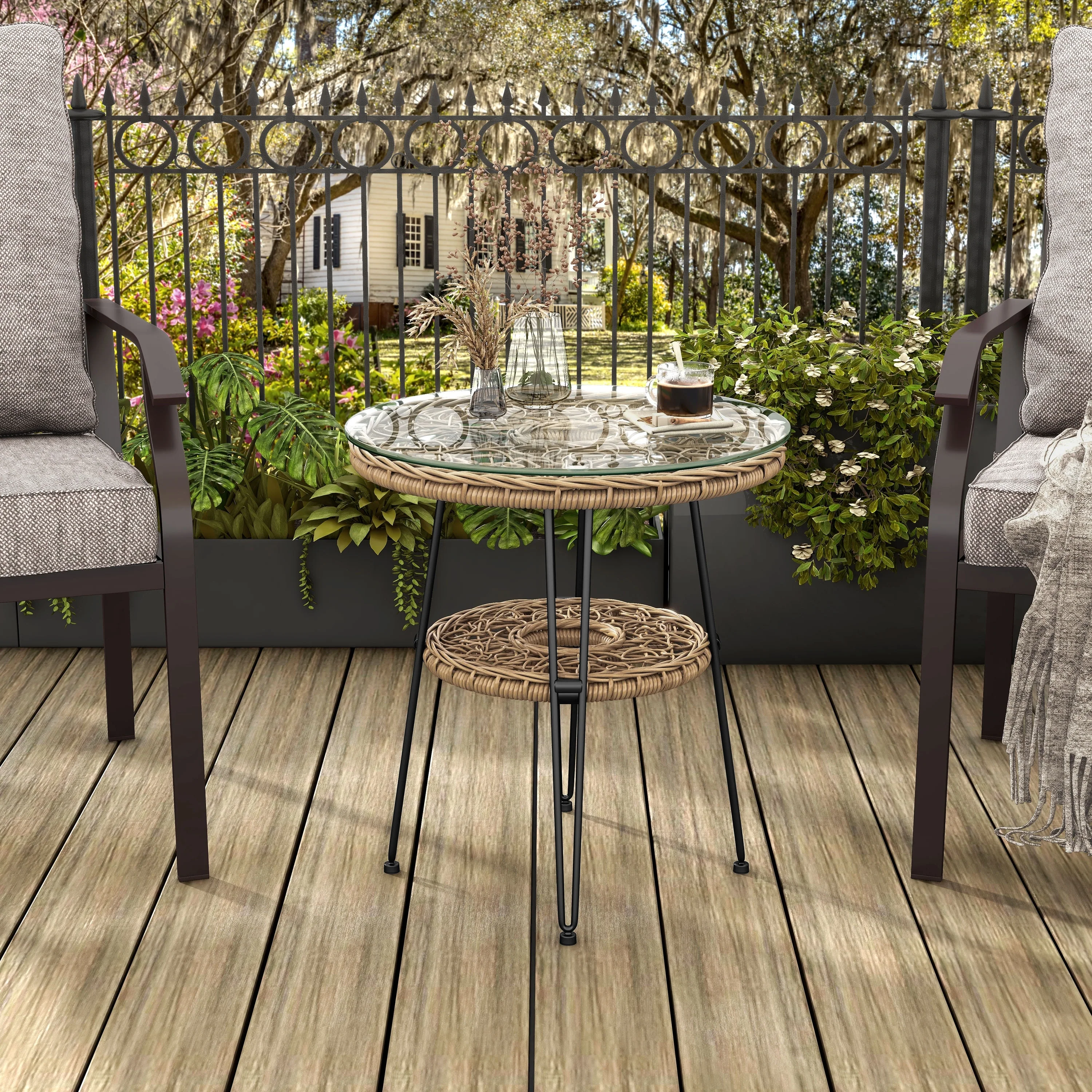 2-piece Outdoor Wicker Arm Table Patio Side Table