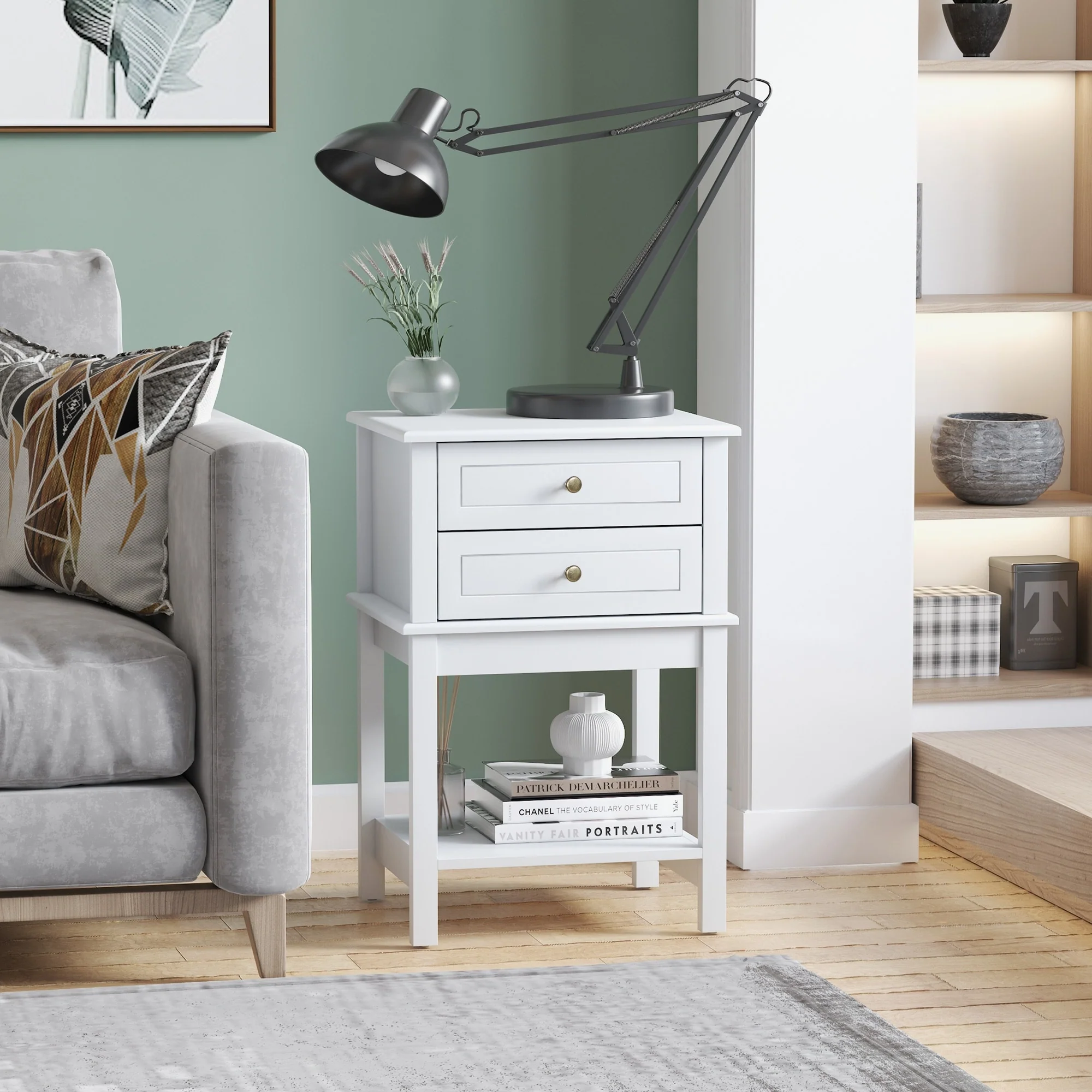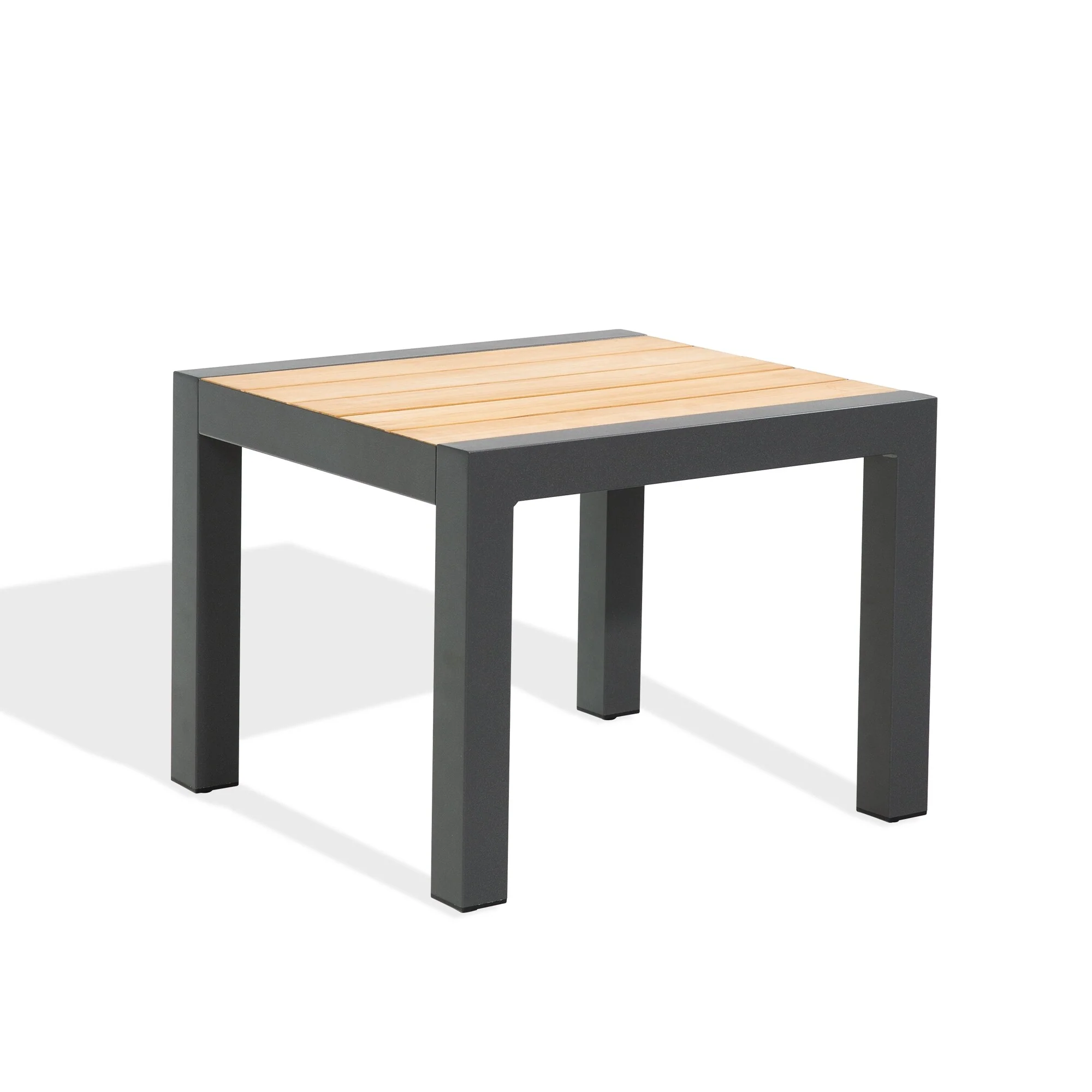 Outdoor Side Table Aluminum Patio End Table with Teak Wood