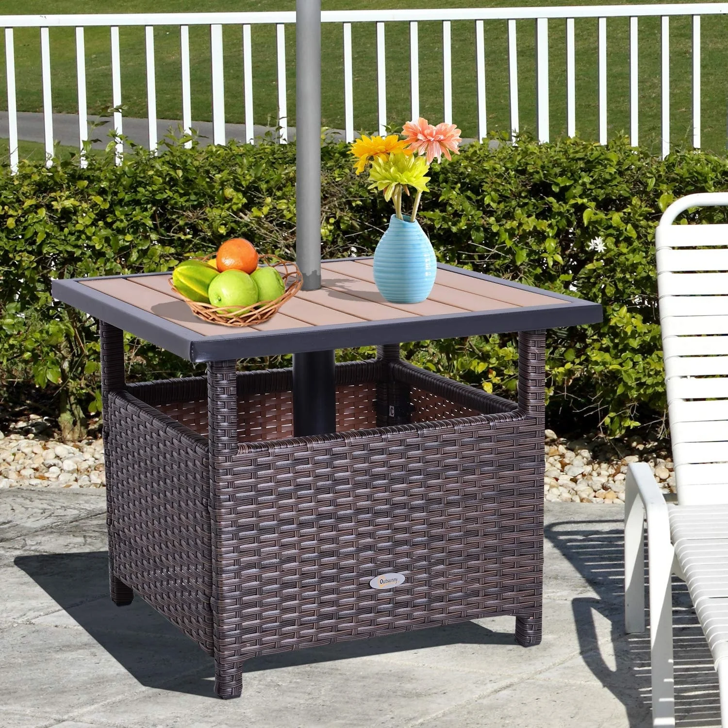 Outsunny Rattan Wicker Outdoor Accent Table with Umbrella Insert