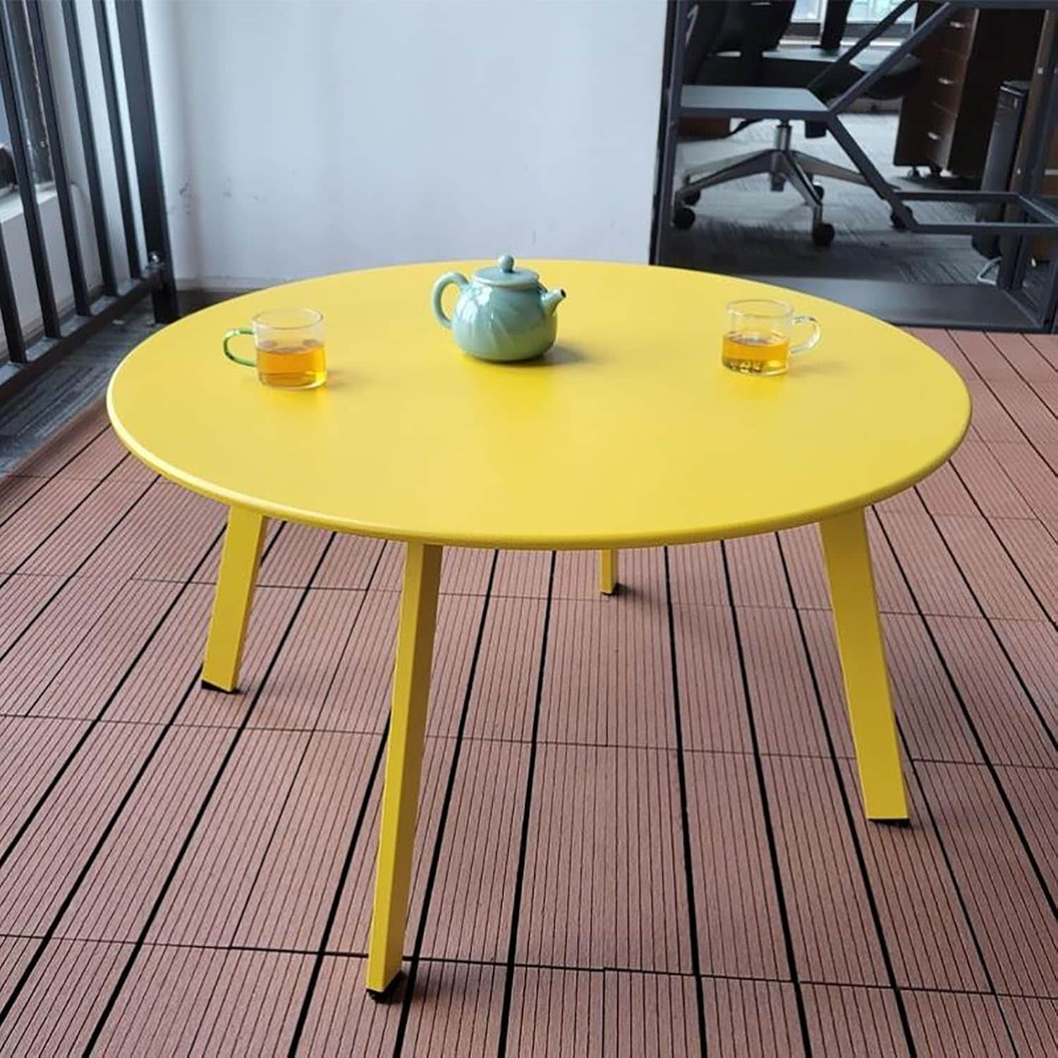 COSIEST Outdoor Patio Round Dark Grey Metal Coffee Table