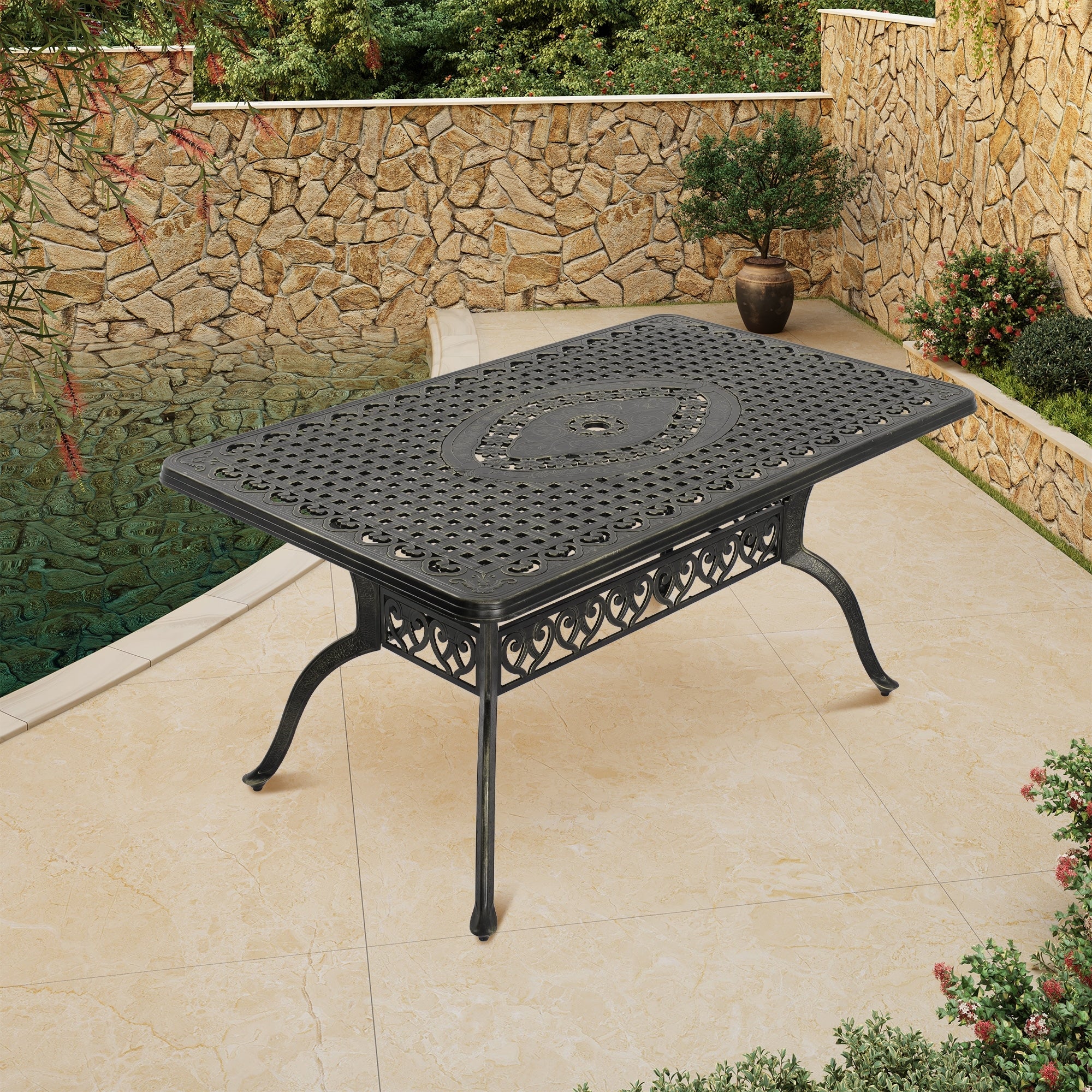 Clihome 60 Cast Aluminum Patio Rectangular Dining Table