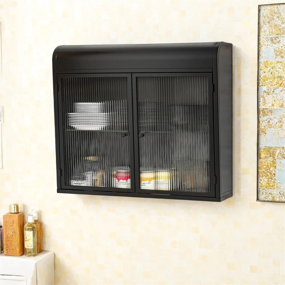 2-Door Wall-Mounted Metal Storage Cabinet with Glass Doors & Shelves