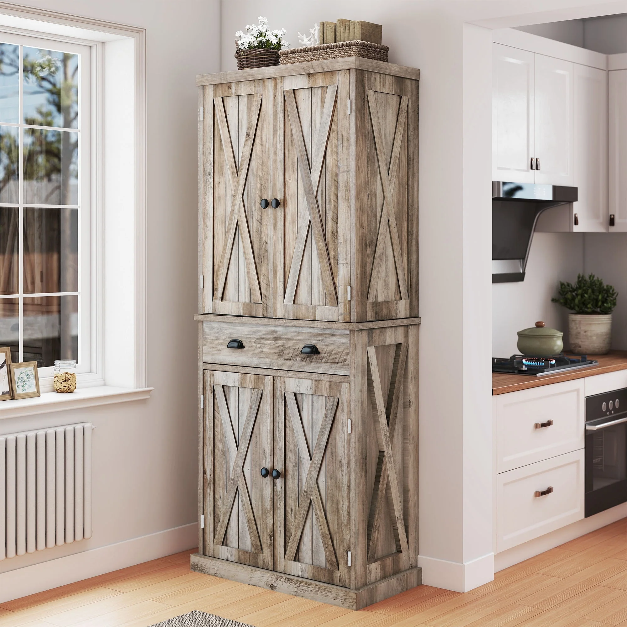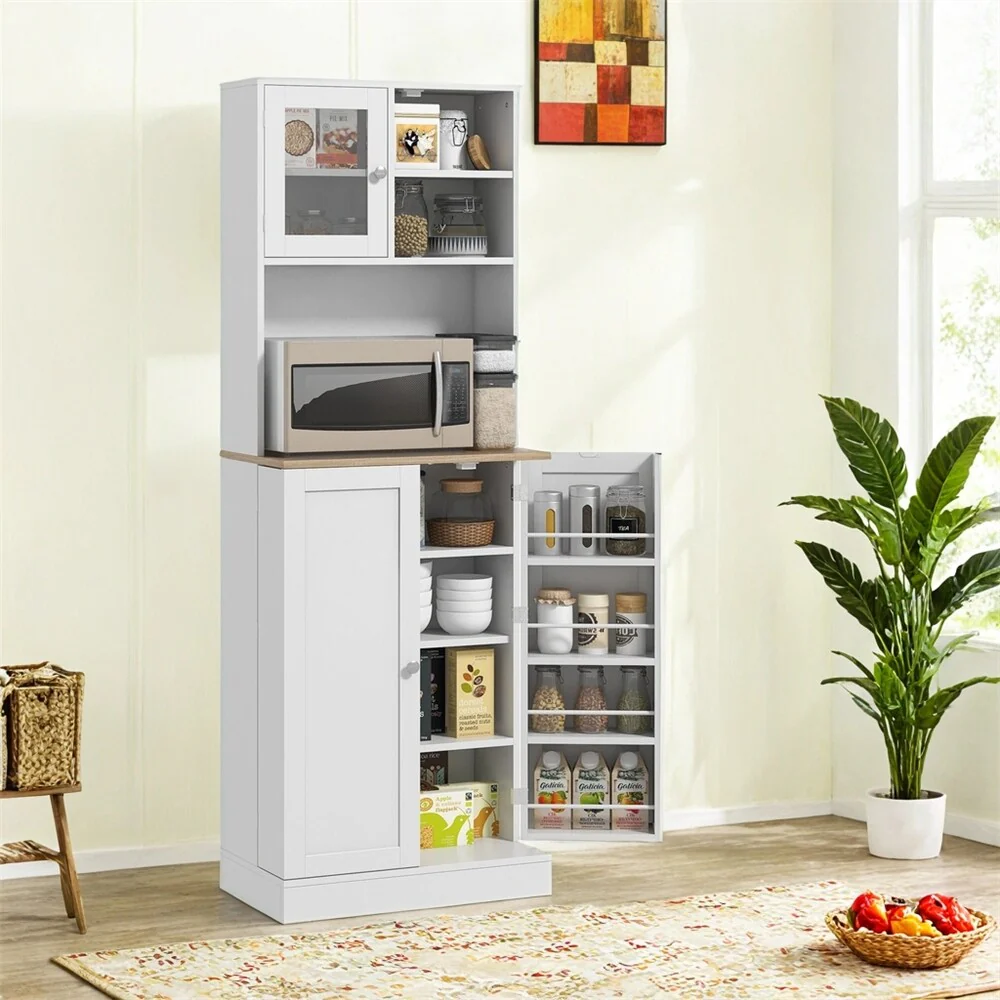 66.5 Pantry Cabinet w/Microwave Stand,Freestanding Storage Cabinet