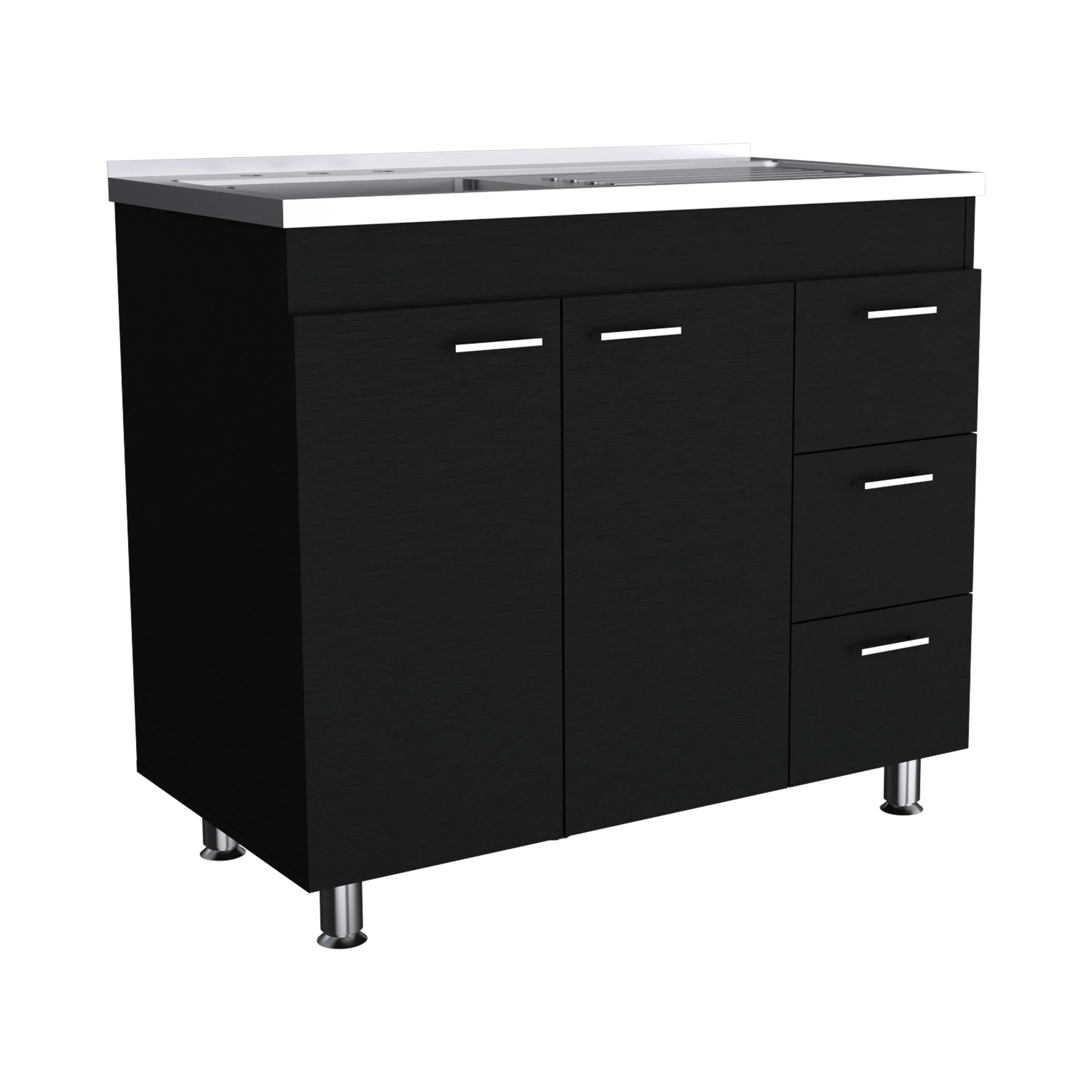 39-inch Wide Double Door Utility Sink cabinet with 3 Drawers - N/A