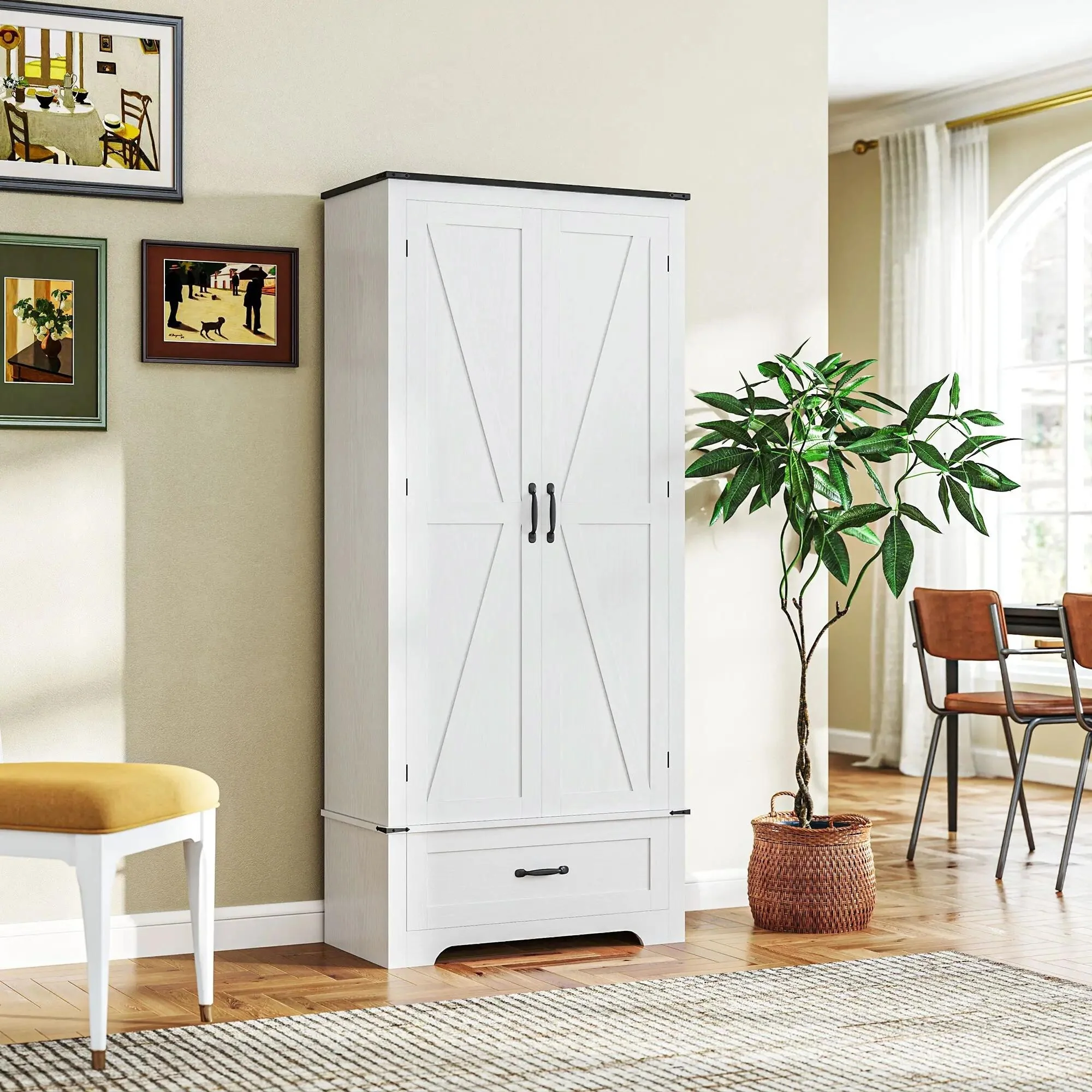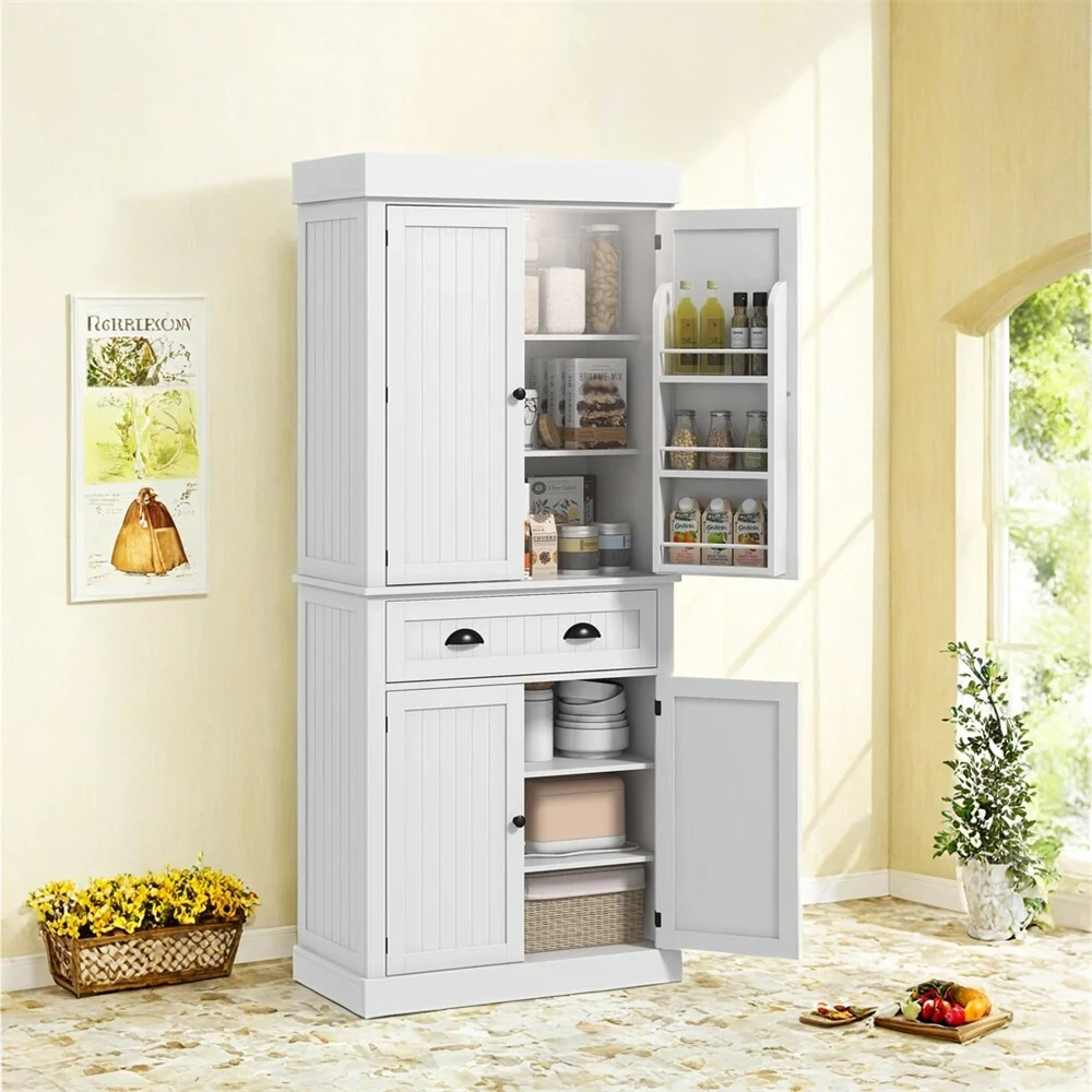 72 Farmhouse Kitchen Pantry Cabinet with Adjustable Shelves