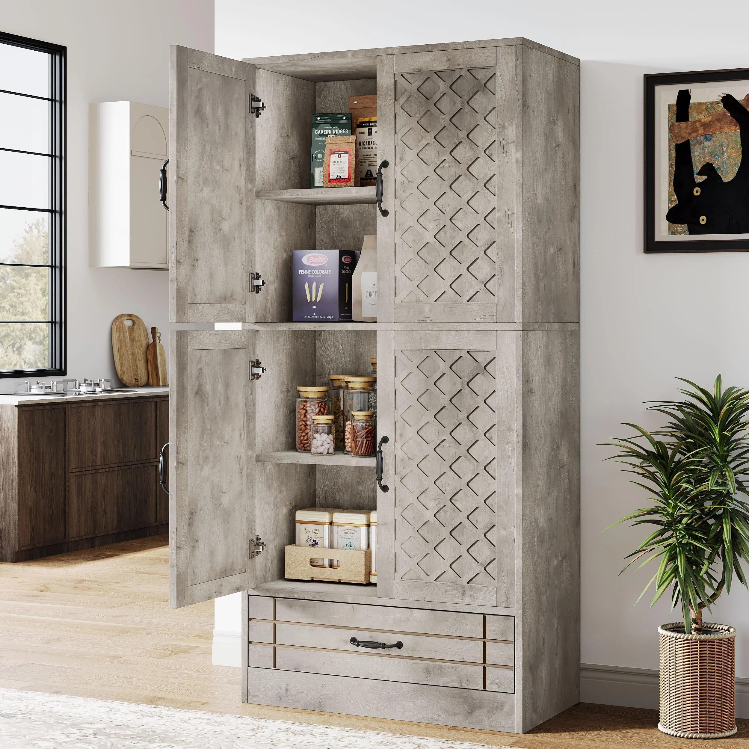 67 Freestanding Kitchen Pantry,4-Door Storage Cabinet Organizer