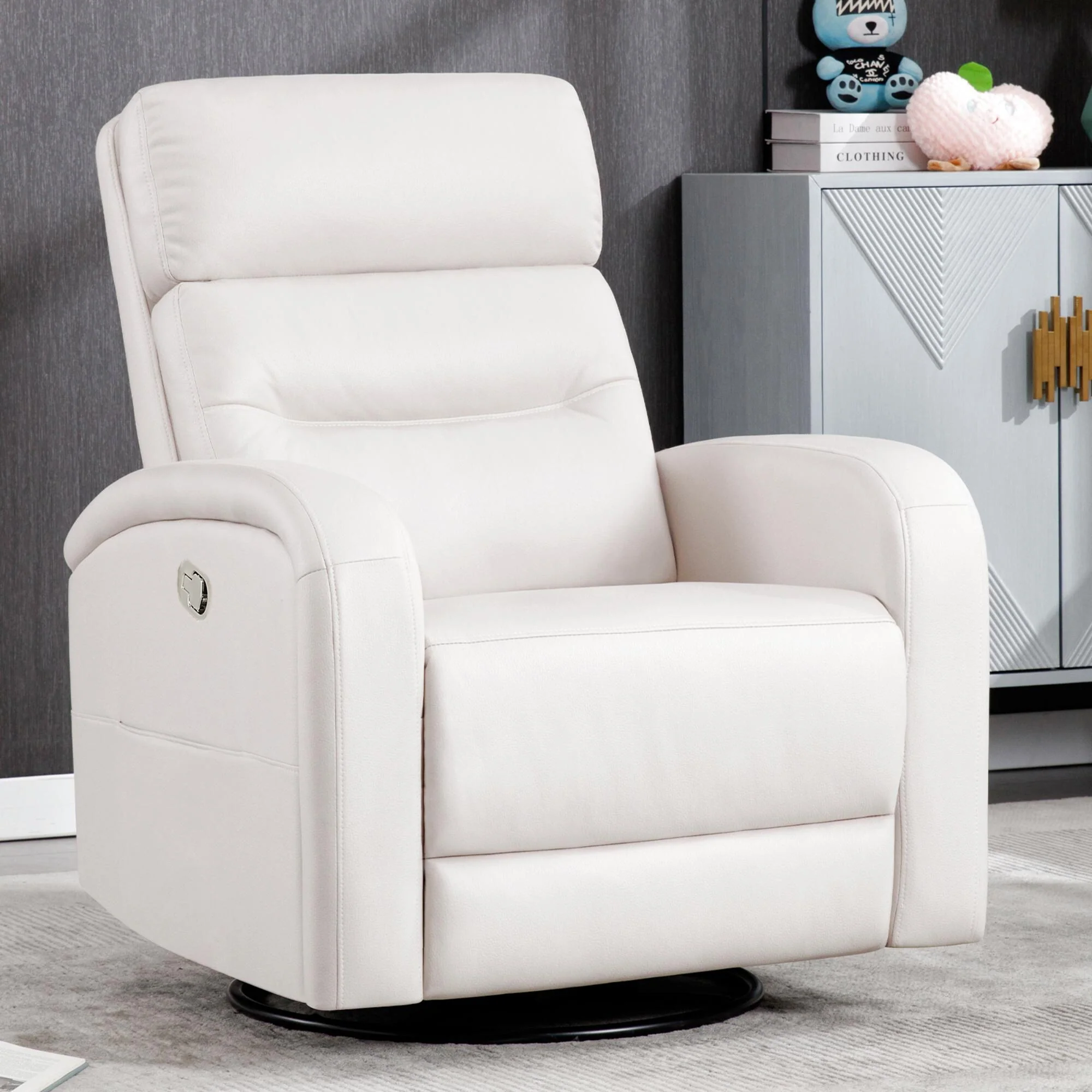 Contemporary Push-Back Recliner Chair with Swivel and Glider