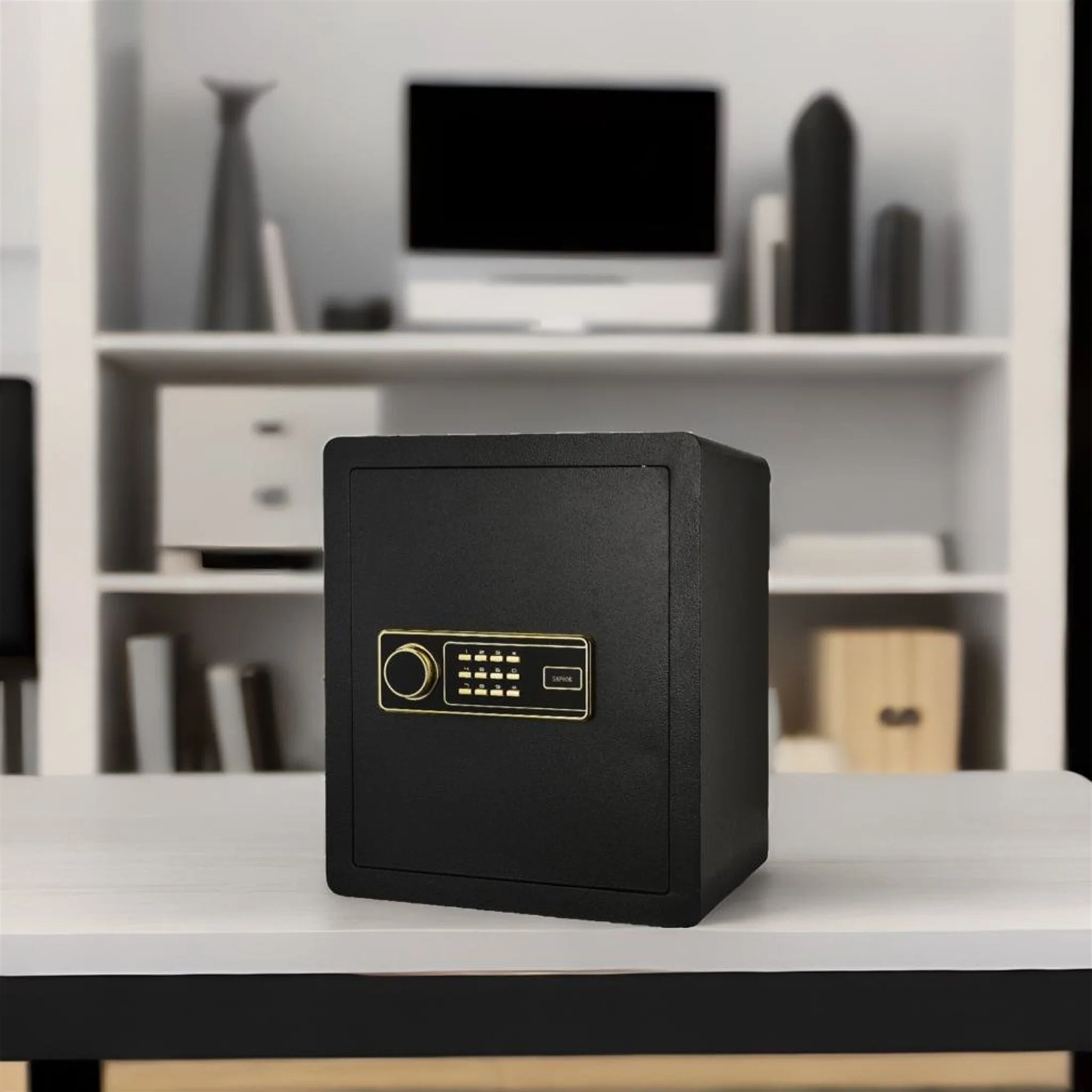 Steel Digital Electronic Safes, Keypad and Key Lock, Black