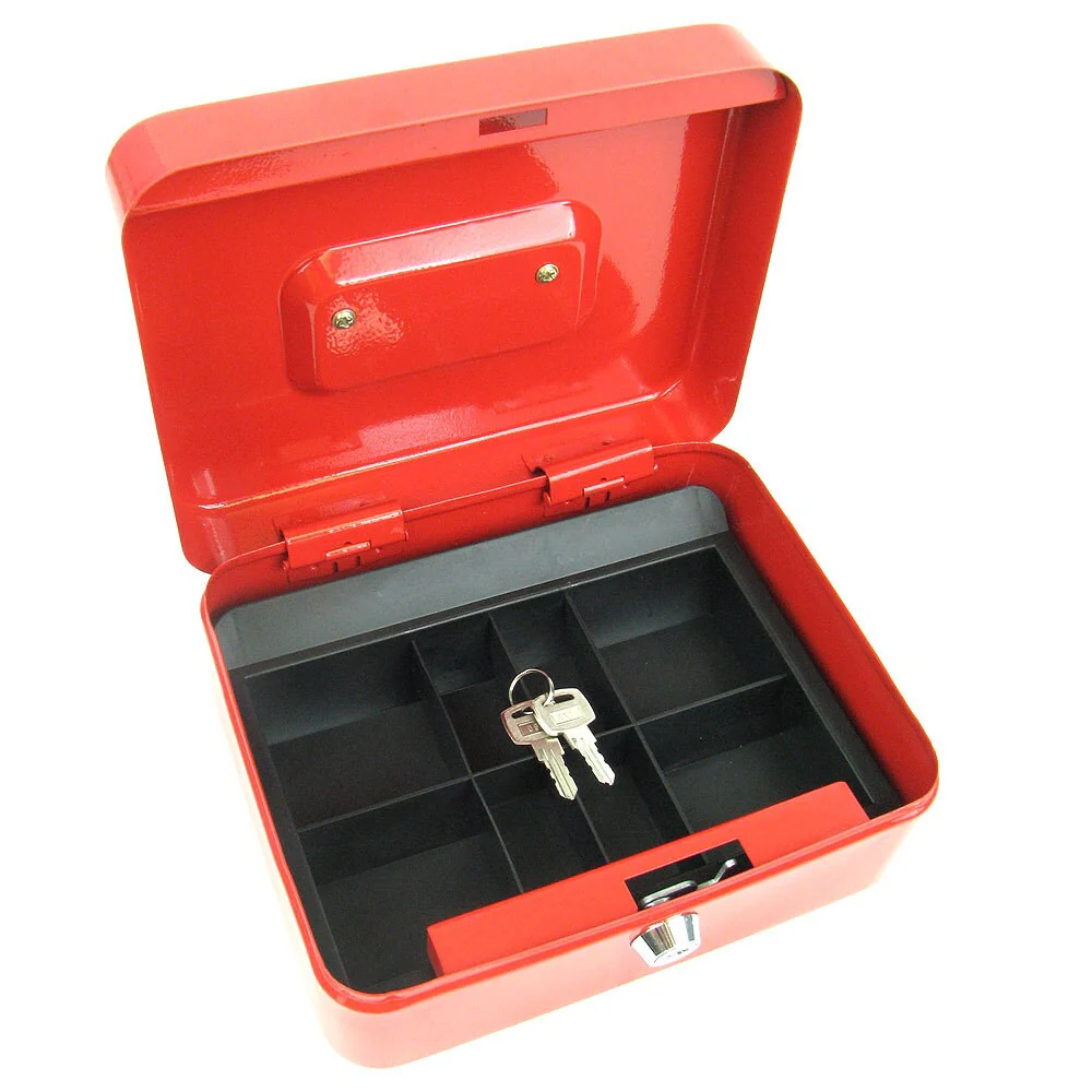 Stalwart 8-inch Key Lock Red Cash Box with Coin Tray