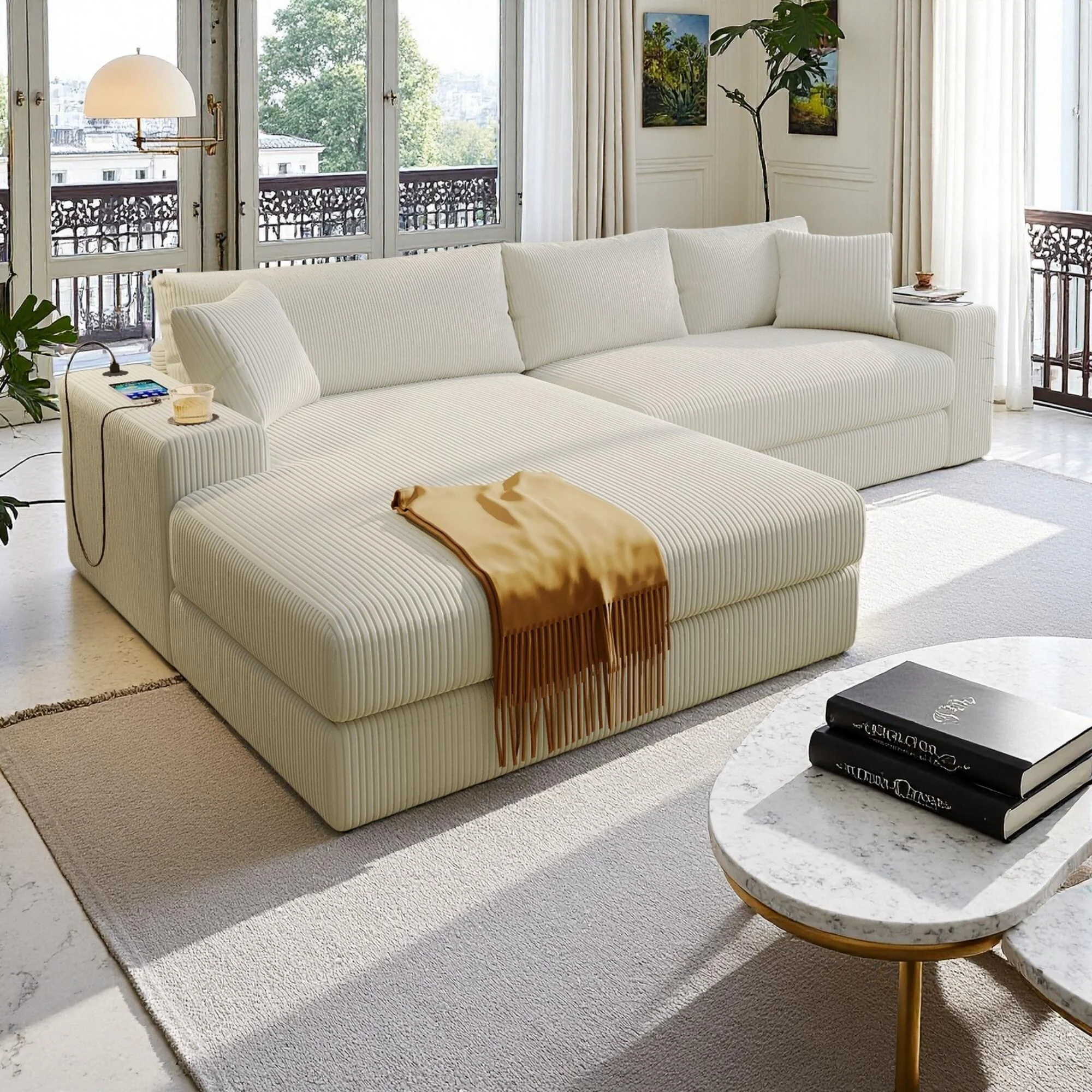 L Shape Modular Sectional Sofa Chenille Upholstered Couch wOttoman